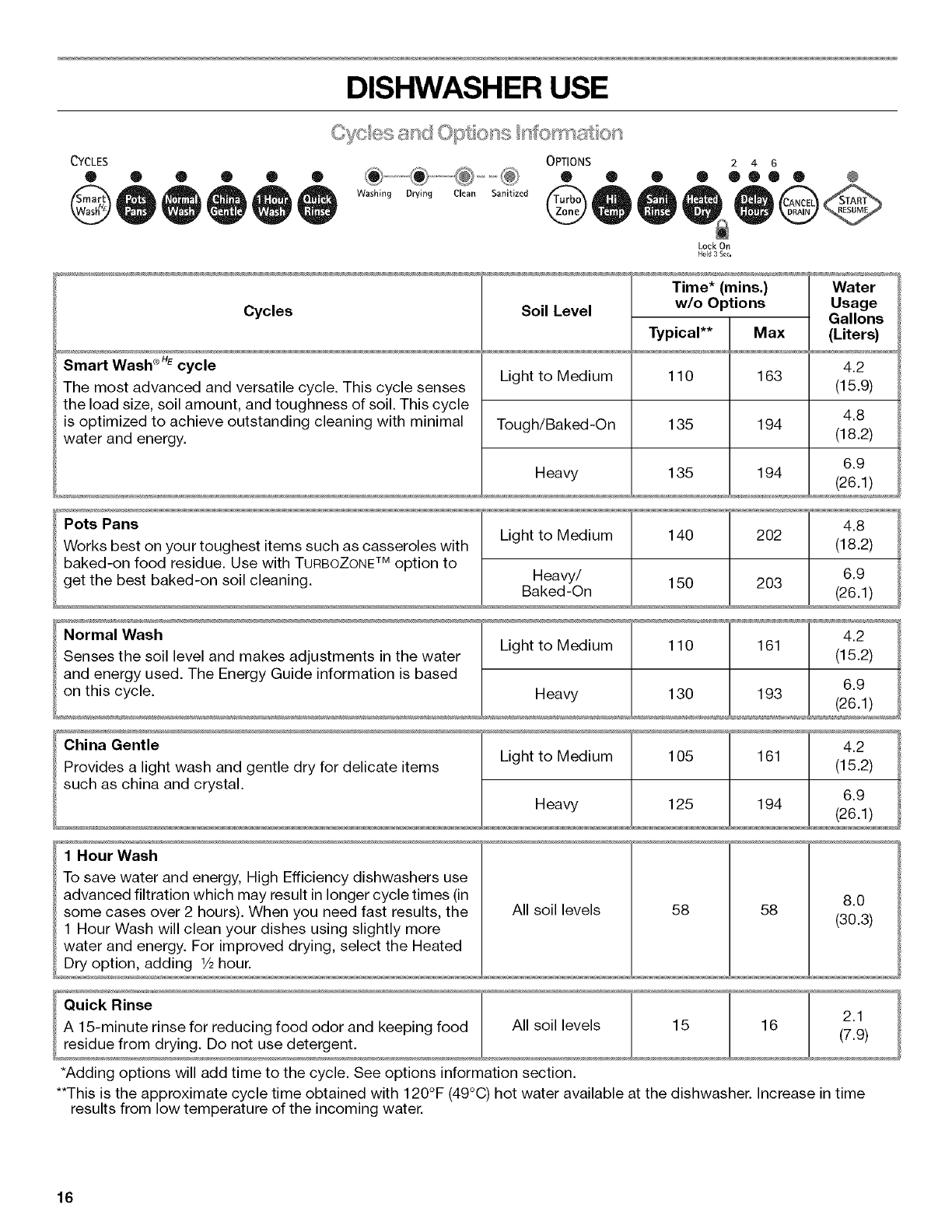 DISHWASH ER USE ...................................................................... 16