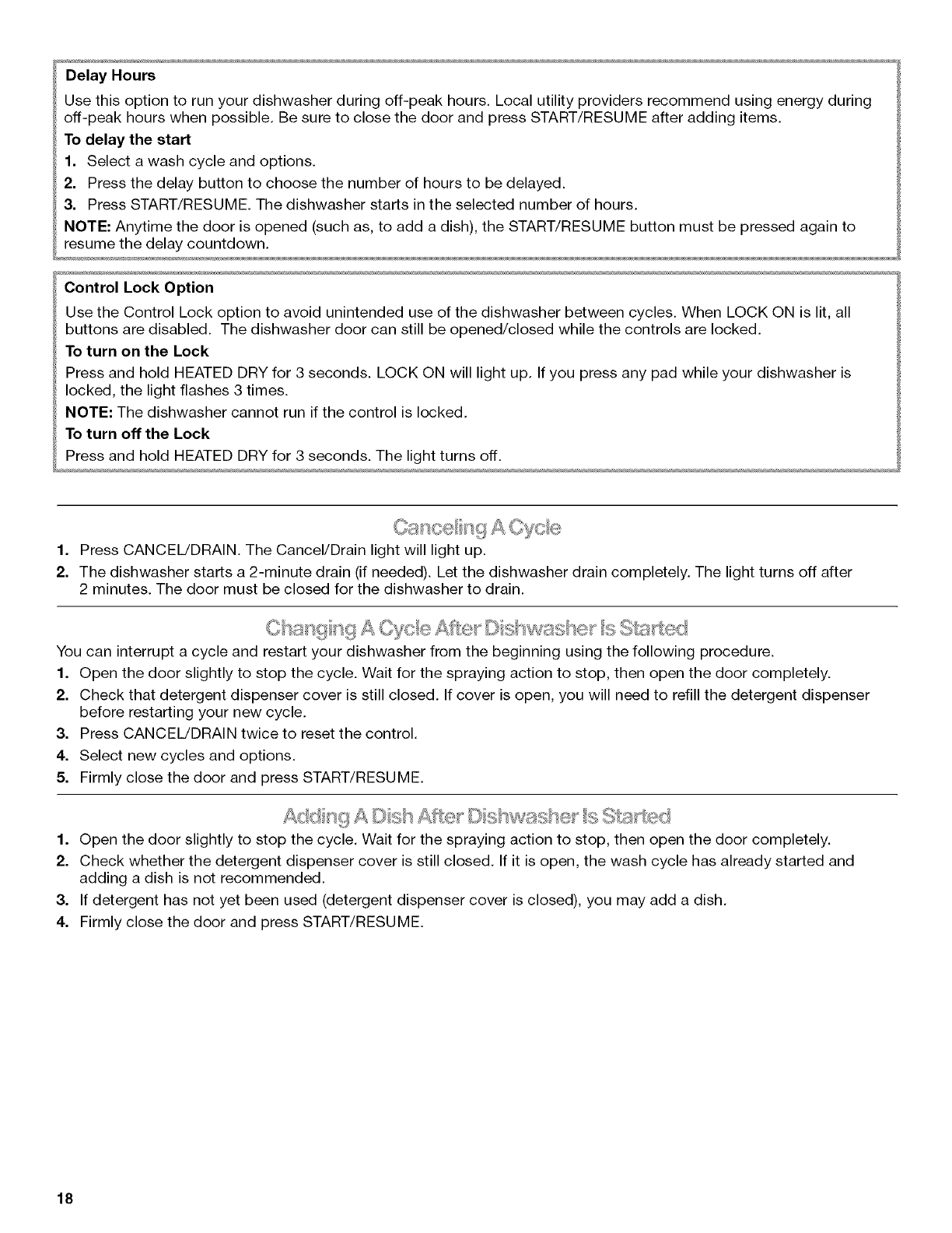 Changing A Cycle After Dishwasher Is Started ......................... 18