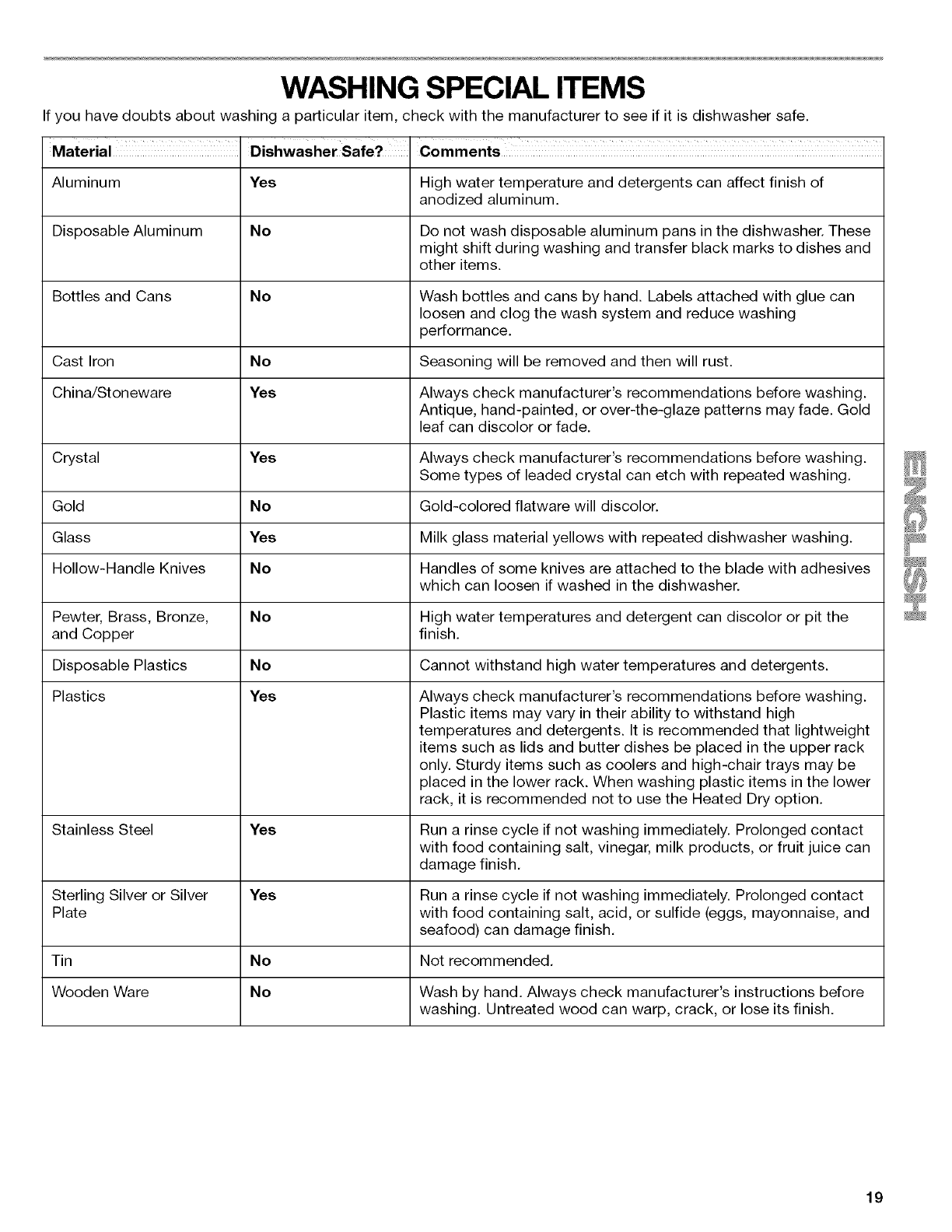 WASHING SPECIAL ITEMS ......................................................... 19
