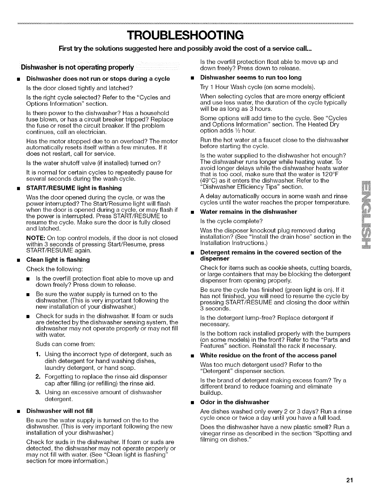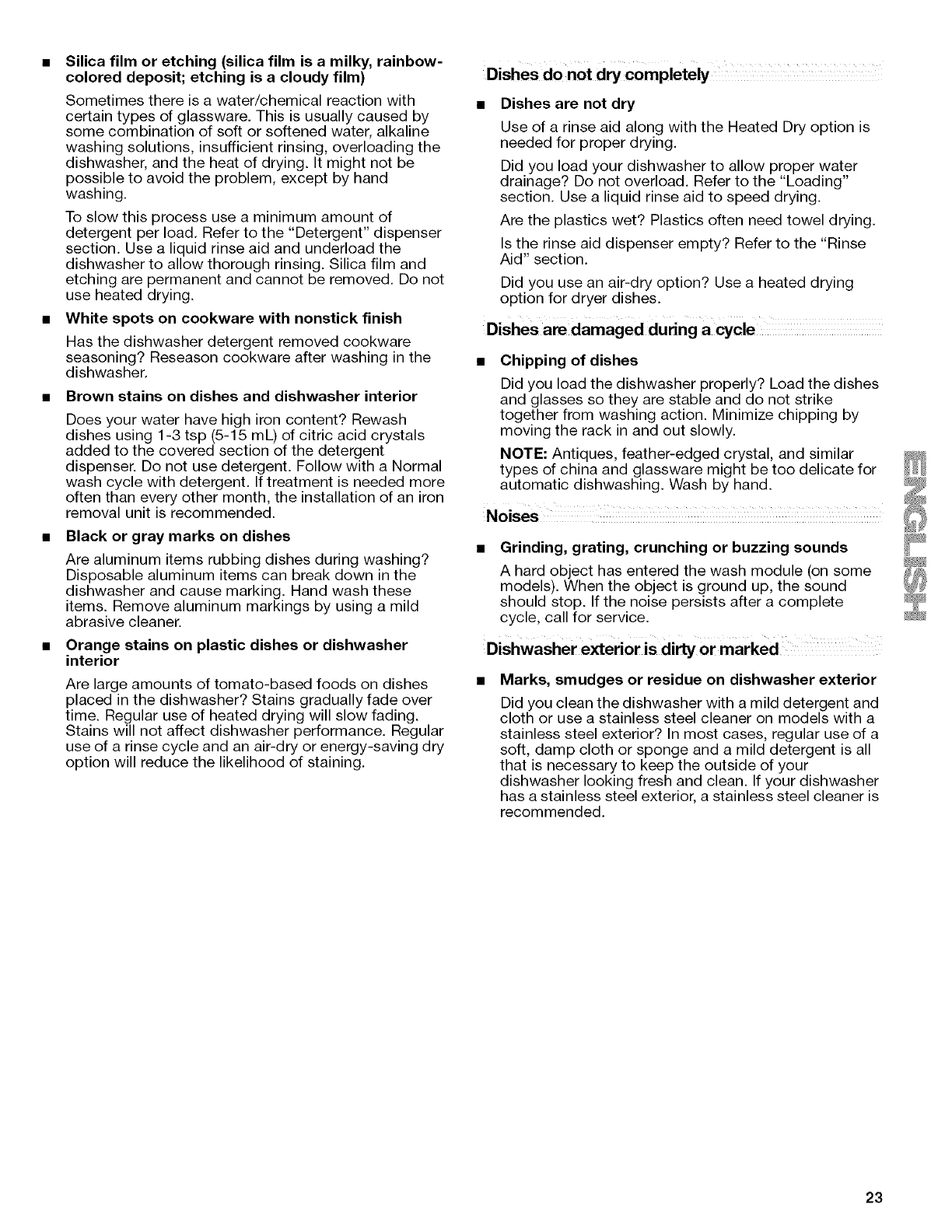 DISHWASHER CARE ................................................................... 20