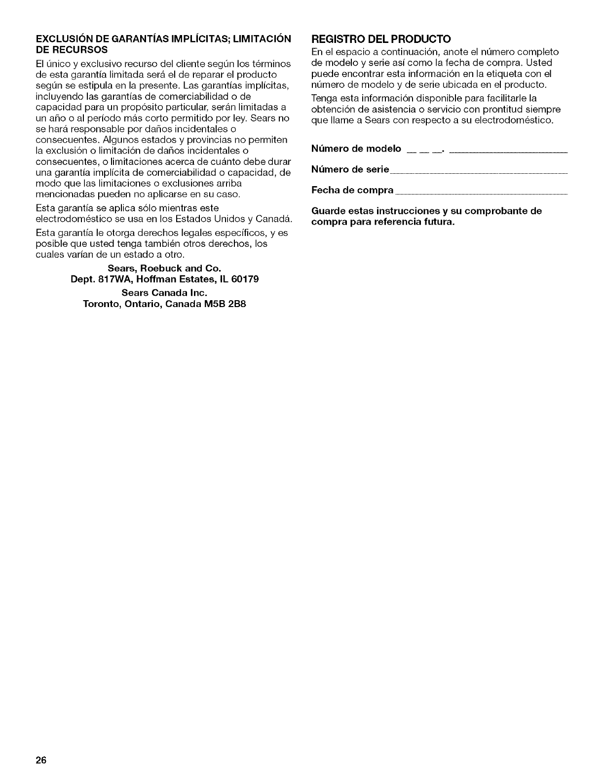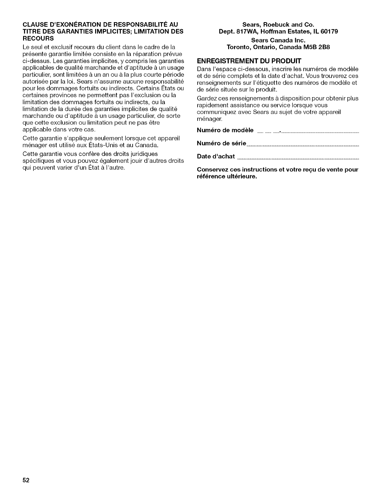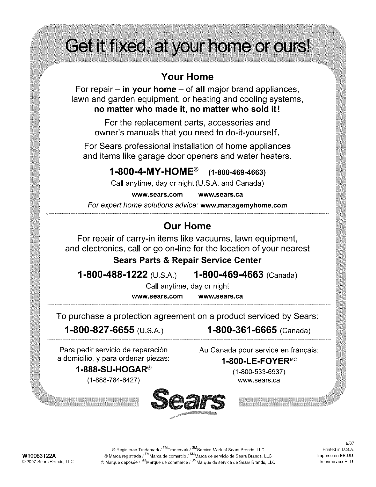 Sears Roebuck and Co., Hoffman Estates, IL 60179 U.S.A. www.sears.com