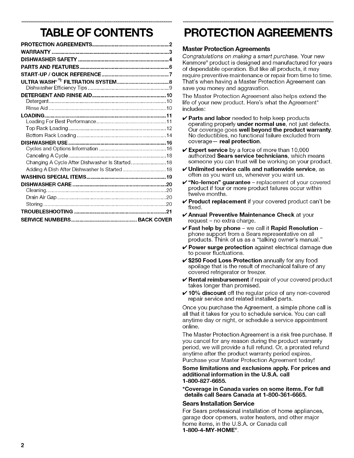 SERVICE NUMBERS ............................................... BACK COVER