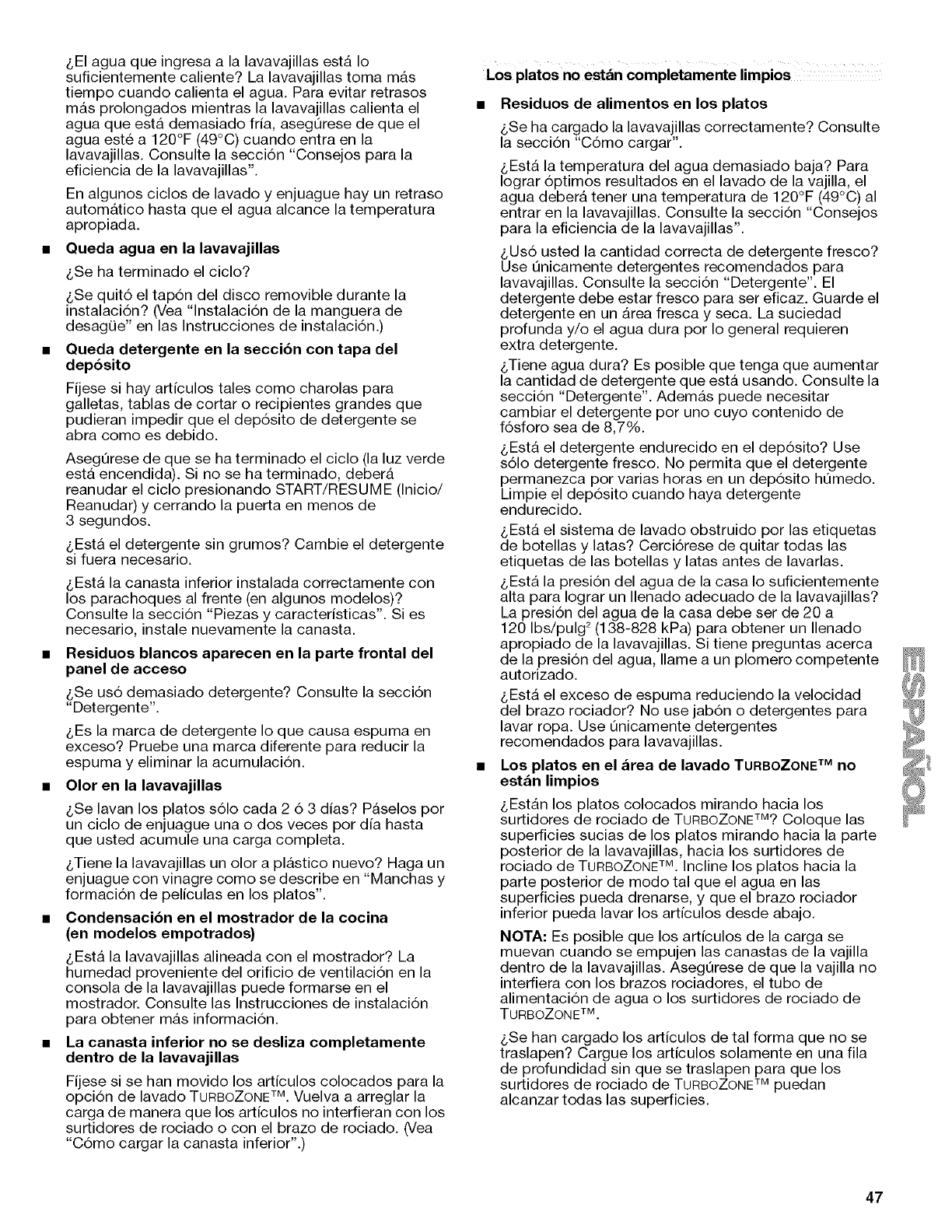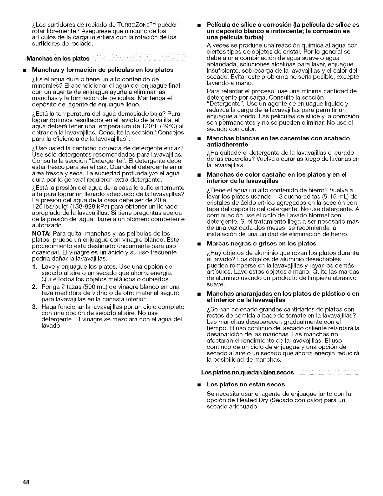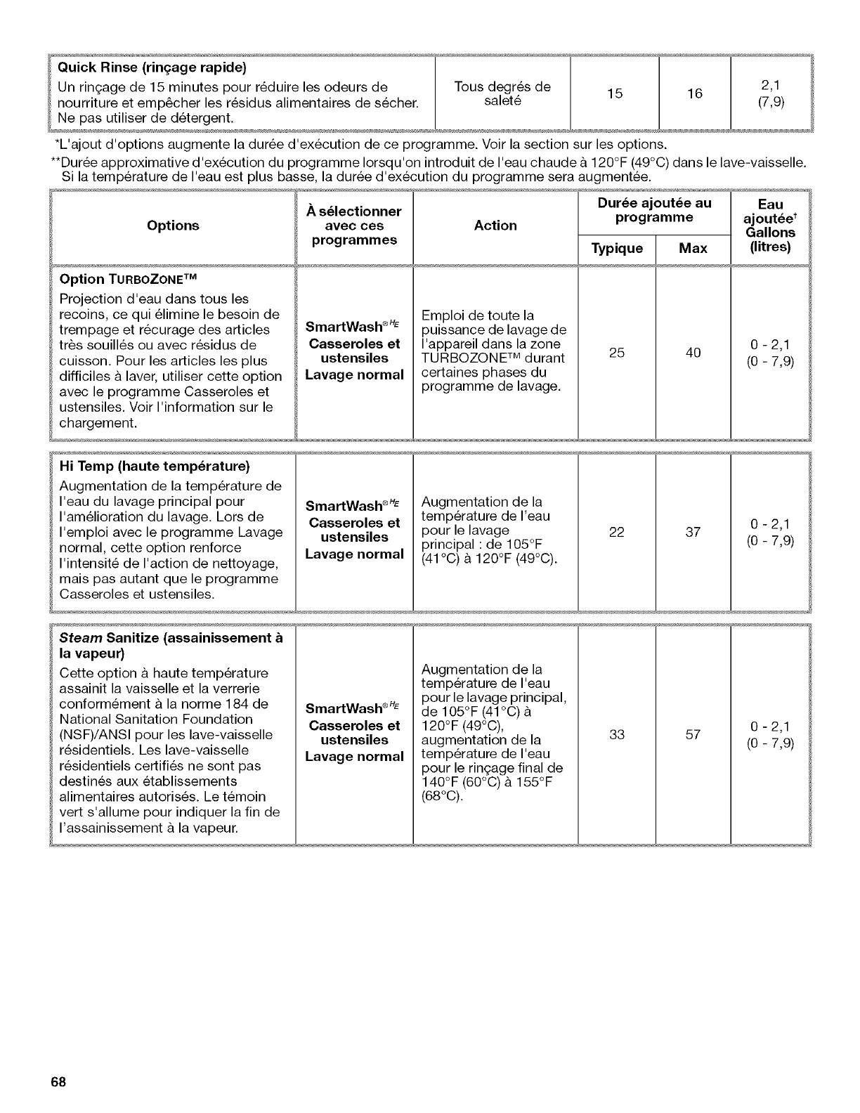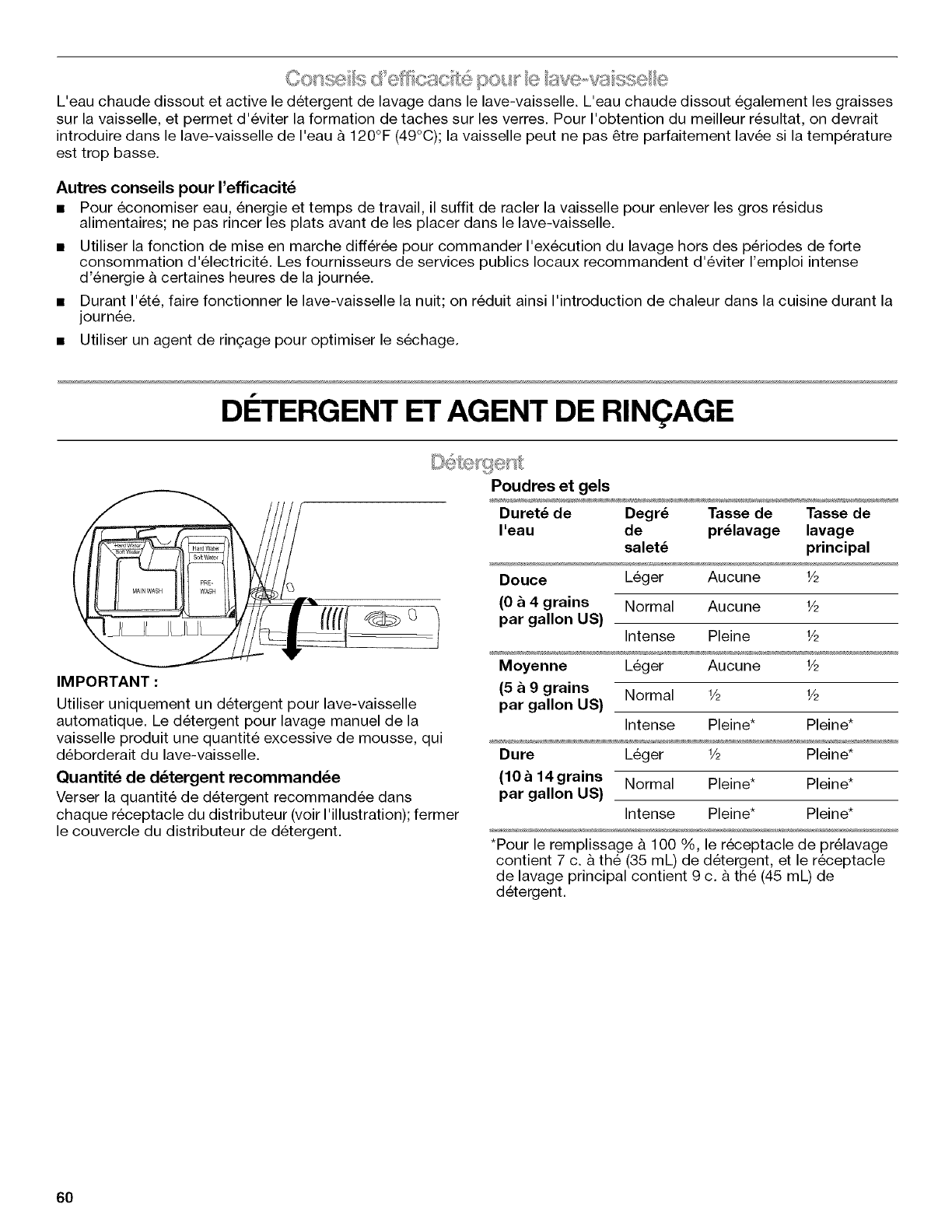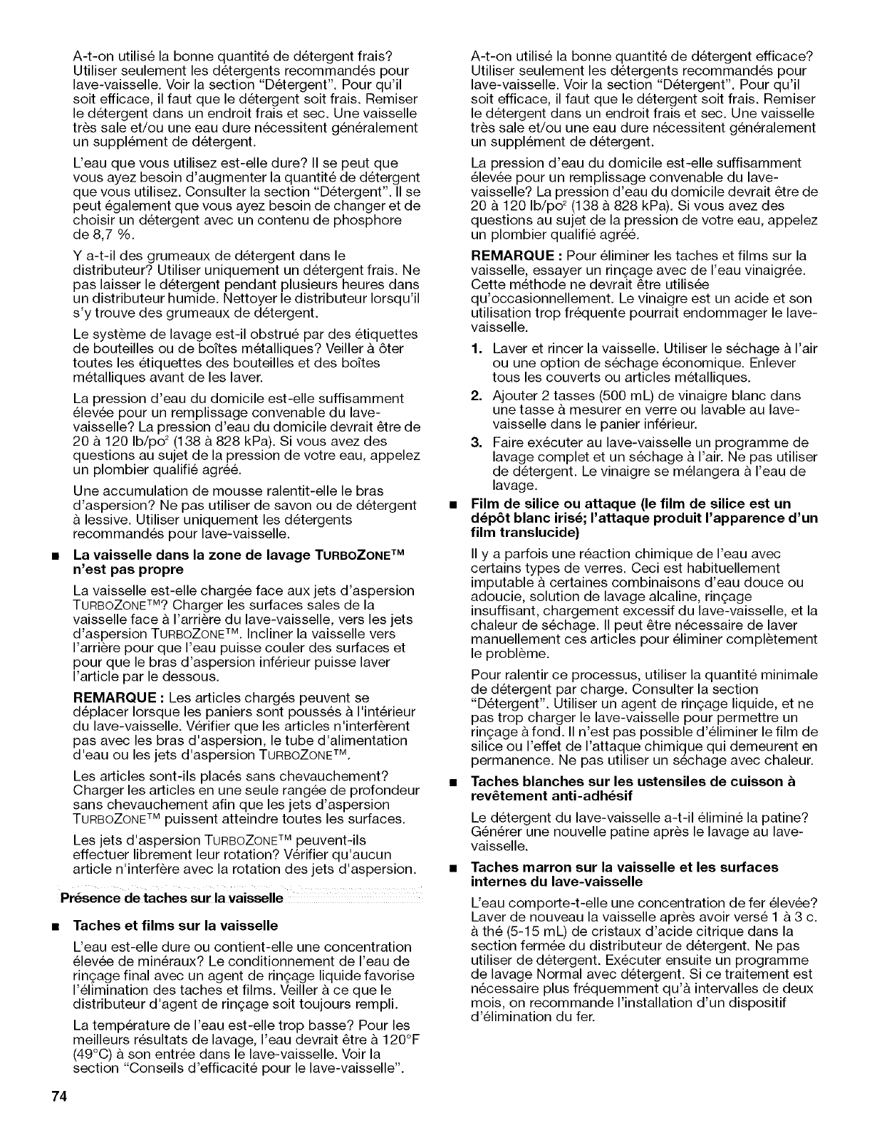 n'affectent pas la performance du lave-vaisselle. Pour