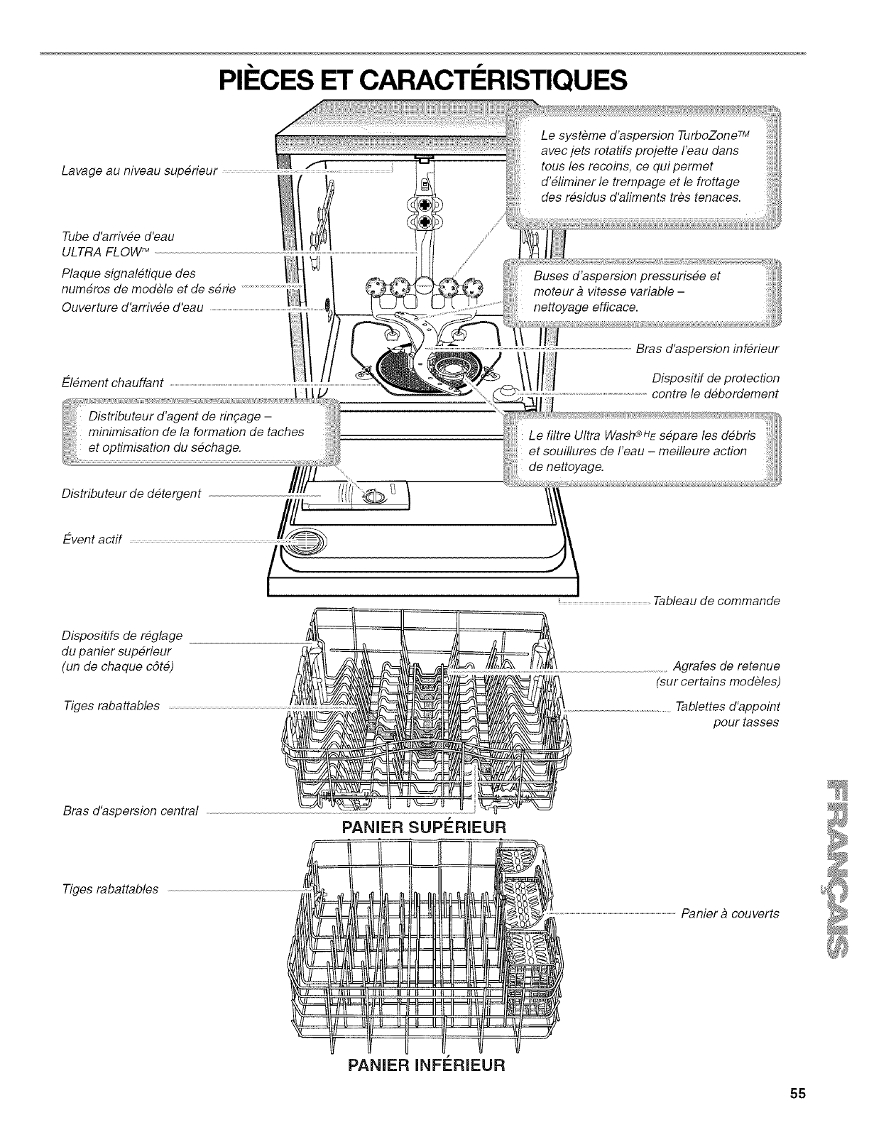 surfaces internes du lave-vaisselle