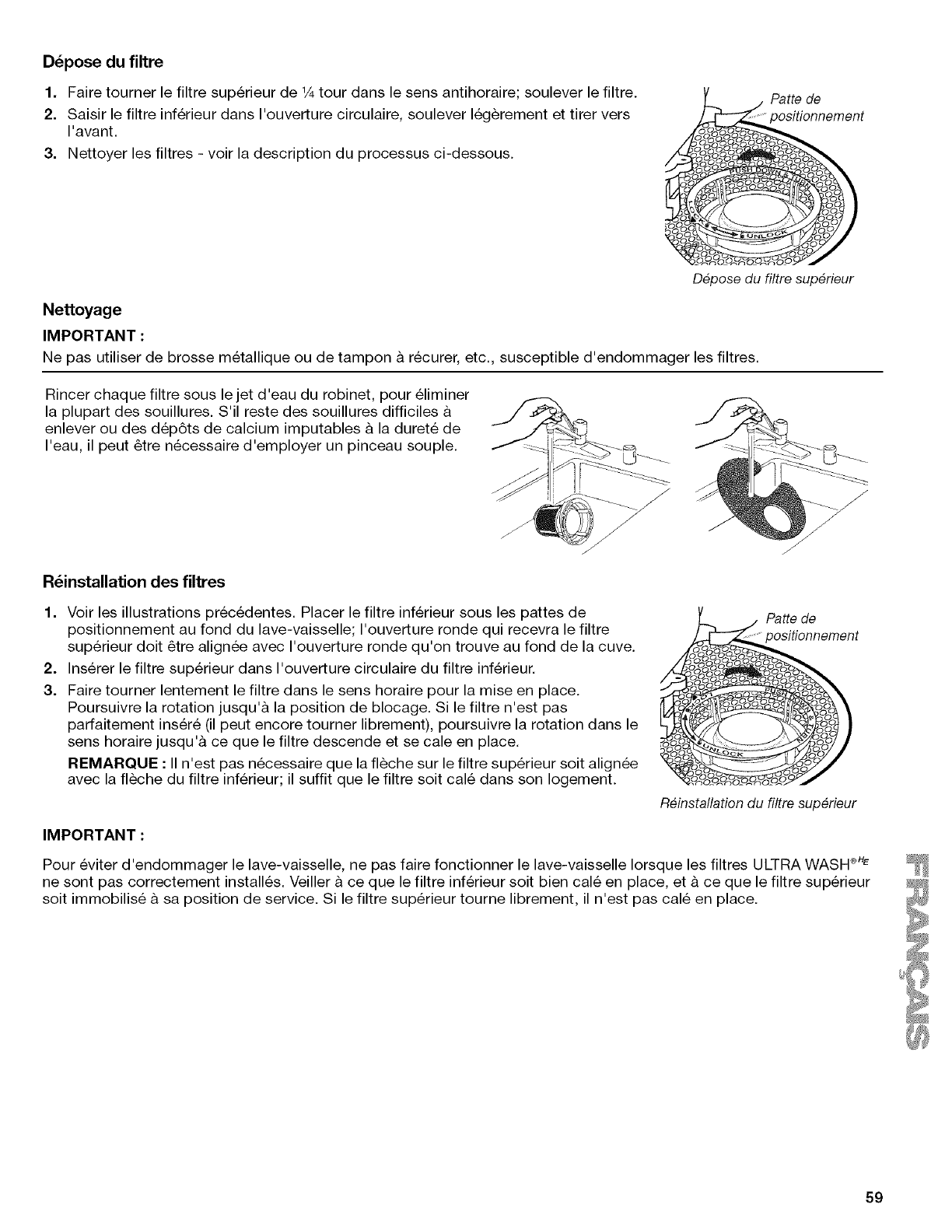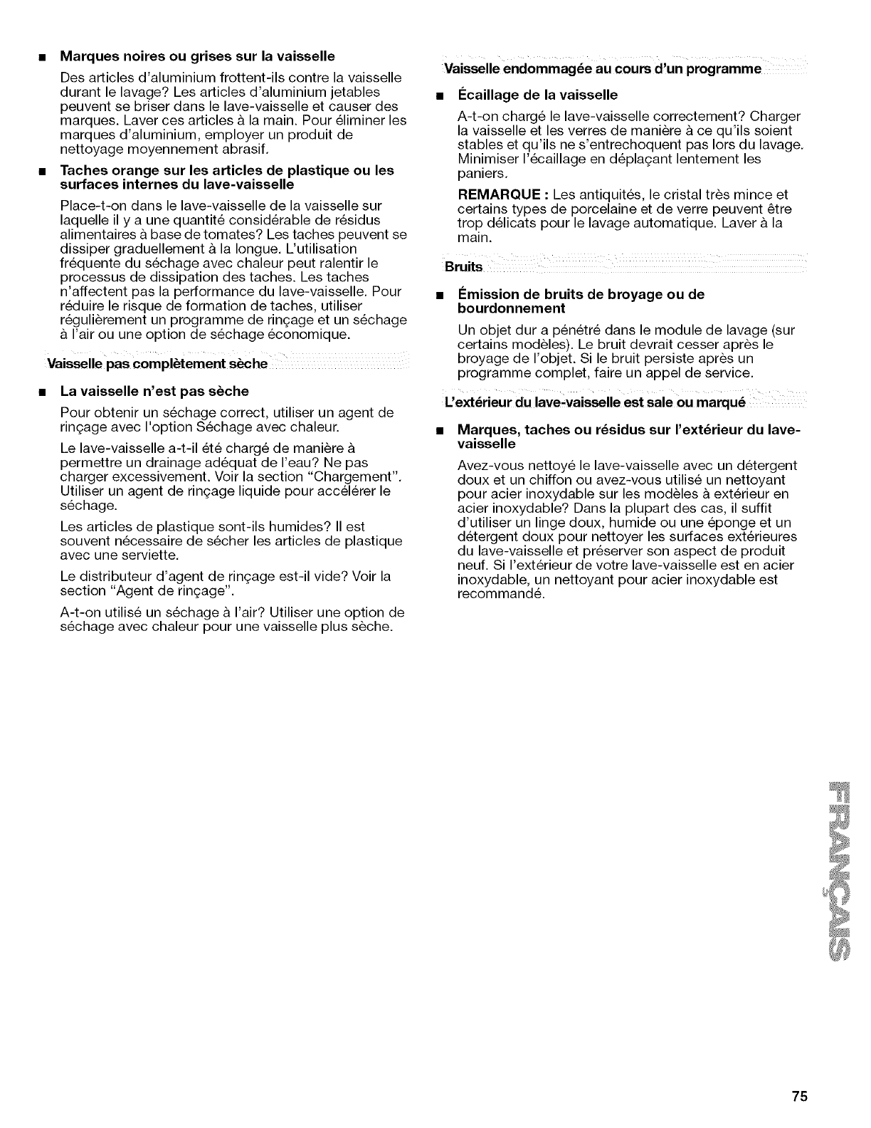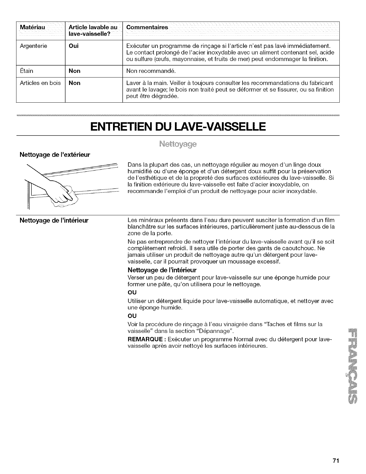 Marques, taches ou r_sidus sur I'ext_rieur du lave-