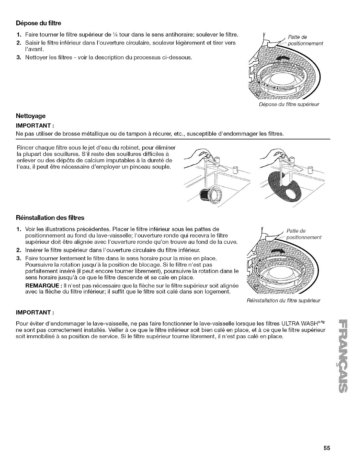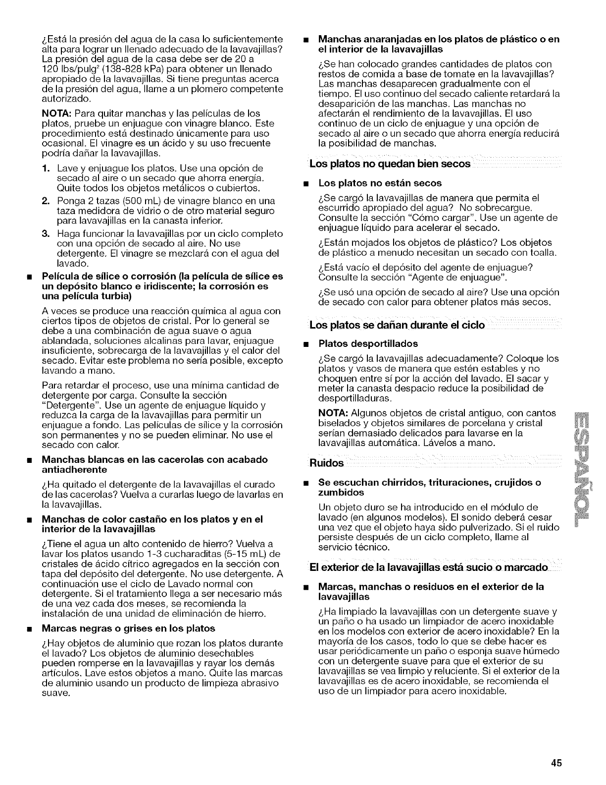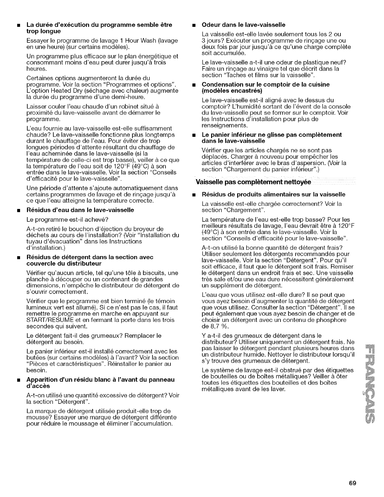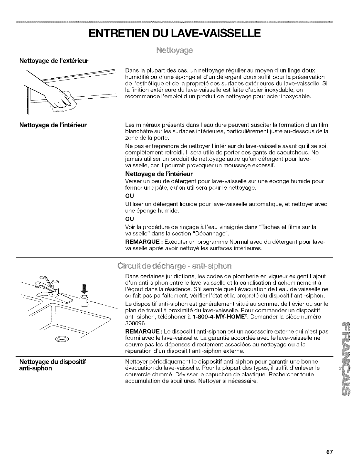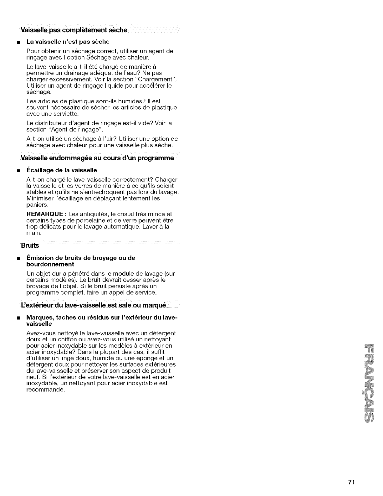 Marques, taches ou r_sidus sur I'ext_rieur du lave-