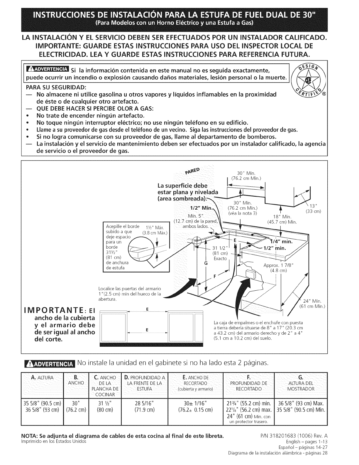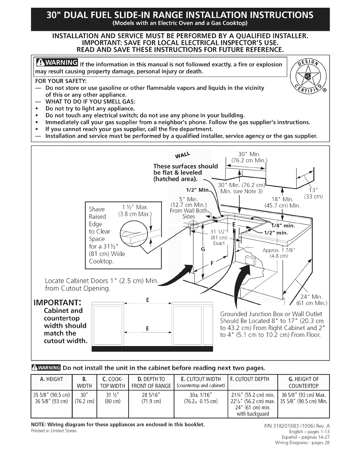 -- Installation and service must be performed by a qualified installer, service agency or the gas supplier.