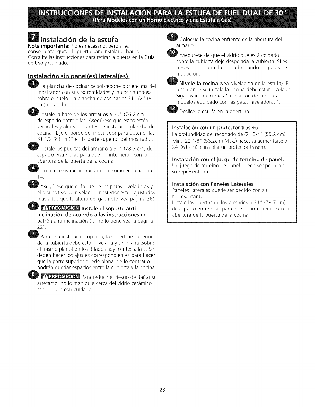 For cutouts below 22 7/8"(58.1 cm), appliance will slightly show out of the cabinet.