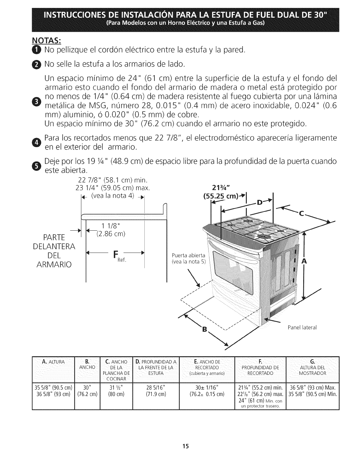 30" (76.2 cm) minimum clearance when the cabinet is unprotected.
