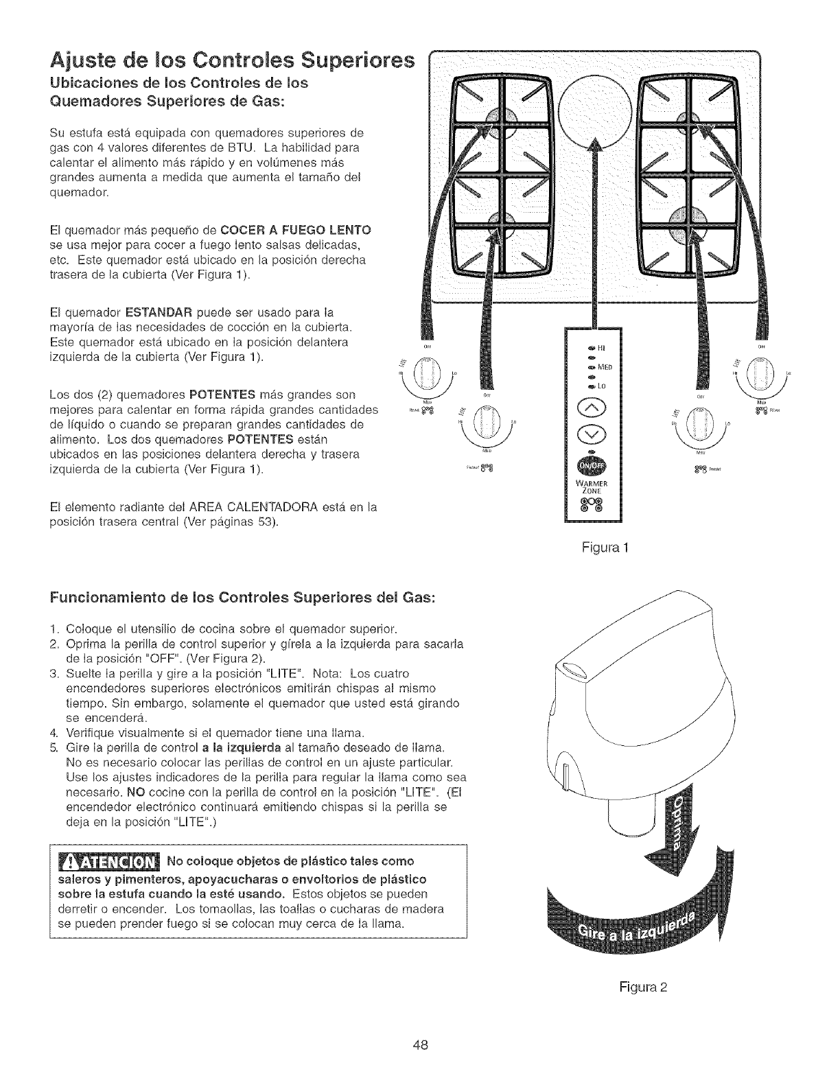 encienda) y luego gire hasta obtener la talla de la llama que desea,