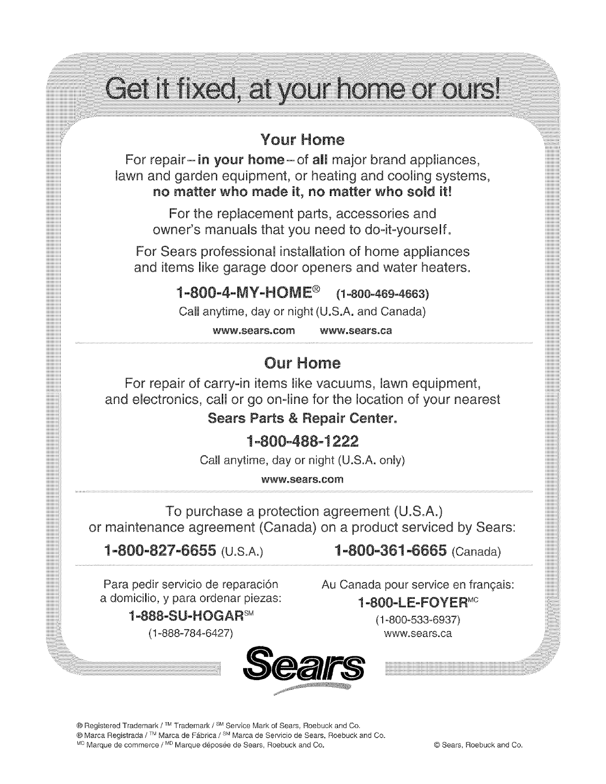 ® Registered Trademark /TMTrademark /SMService Mark of Sears, Roebuck and Co.