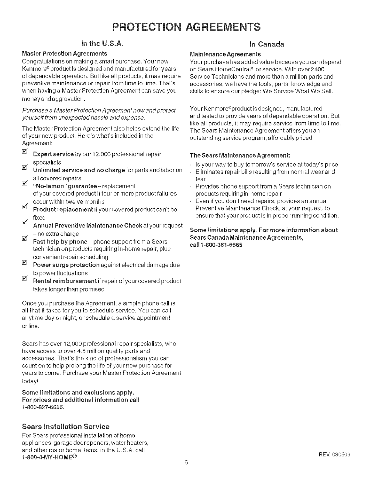 or maintenance agreement (Canada)on a product serviced by Sears:
