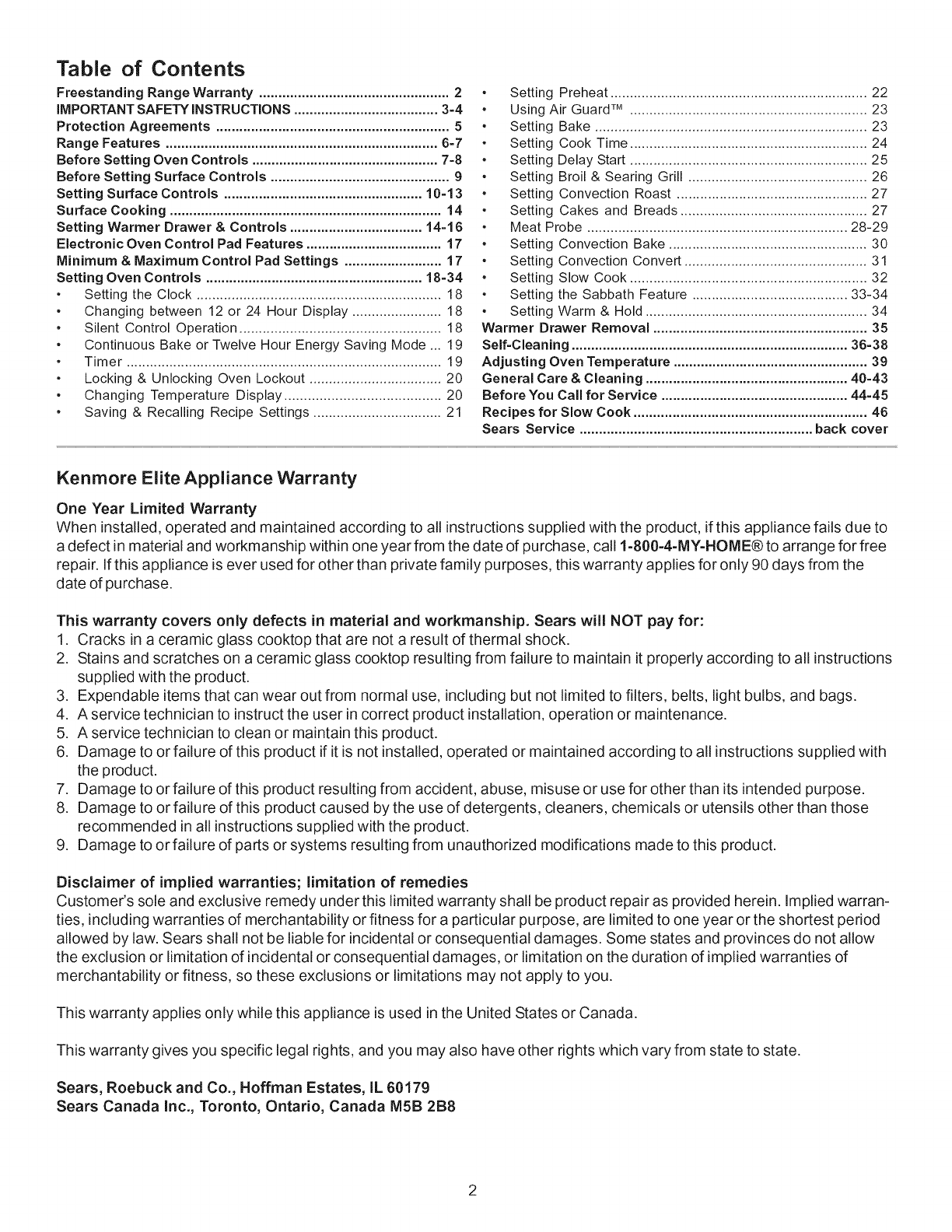 Kenmore Elite 79097472802 User Manual ELECTRIC RANGE Manuals And Guides L0809158