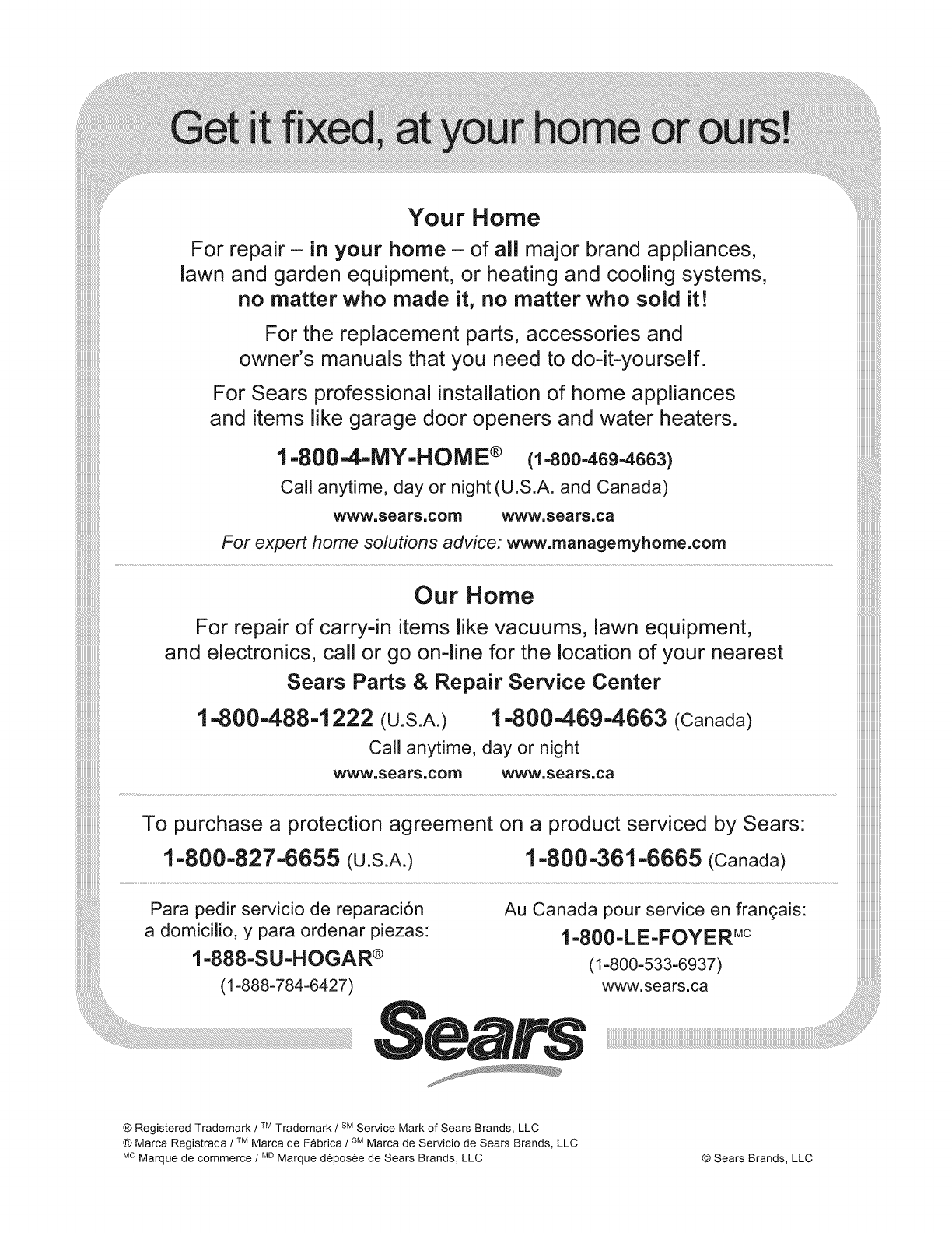 iiiiiiiiiii_;;.... (1-888-784-6427) www.sears.ca .....,_:_ii_i!ii!ii!i!iI