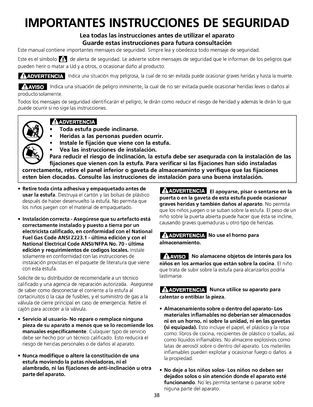 the Installation Instructions for proper anti-tip bracket(s) installation.