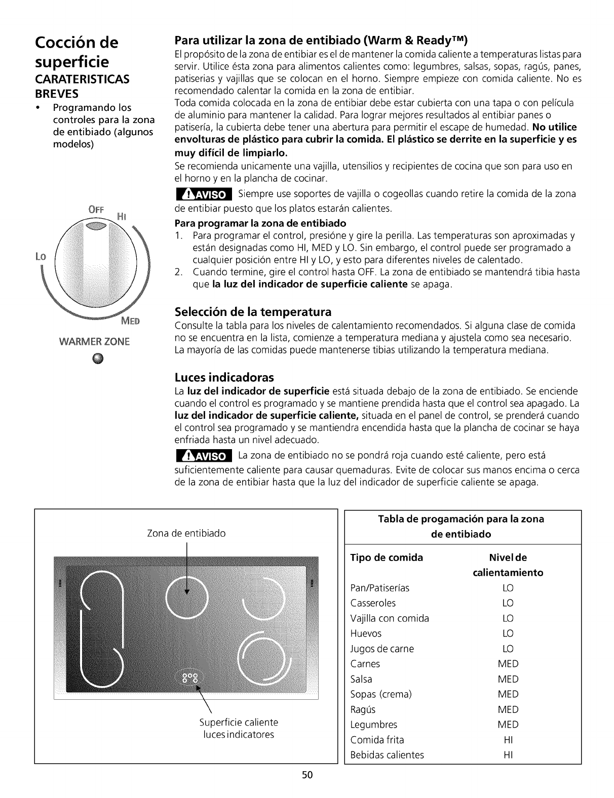 temperatura deseada antes de colocar la comida. Trate de ajustar las temperaturas