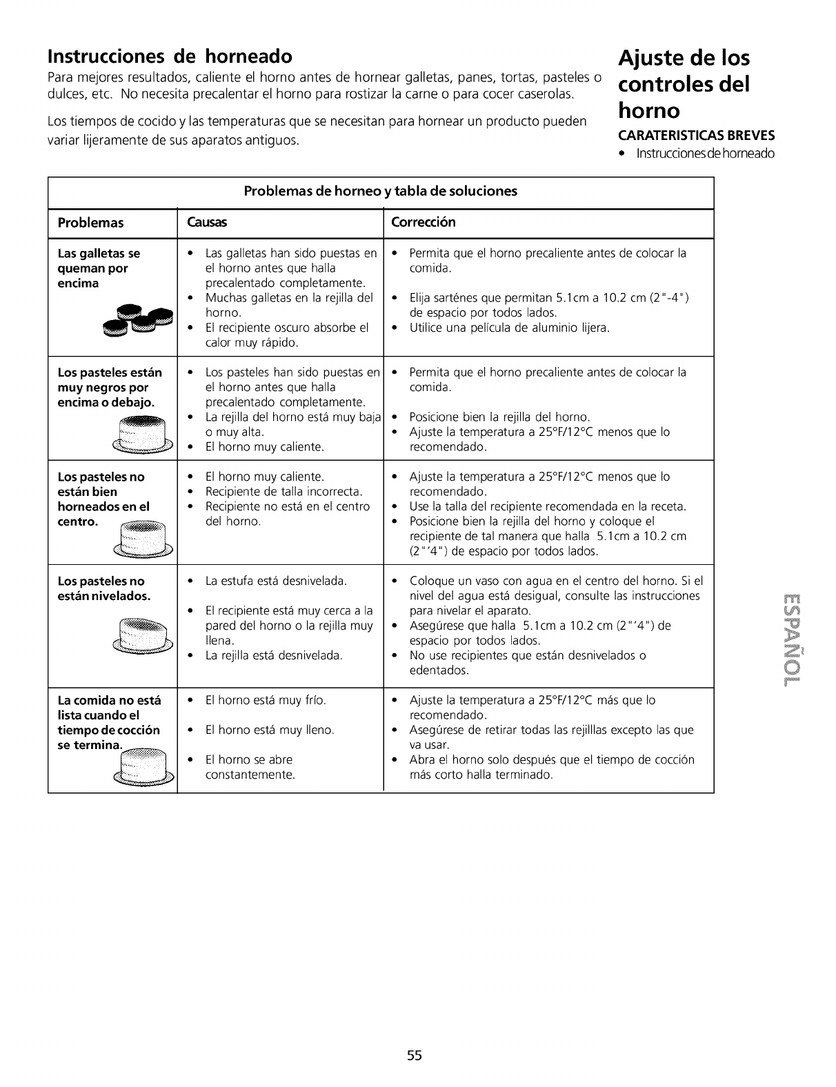 Malos resultados al hornear. Muchos factores afectan el horneo. AsegOrese que la rejilla est_ en buen lugar. Centre la