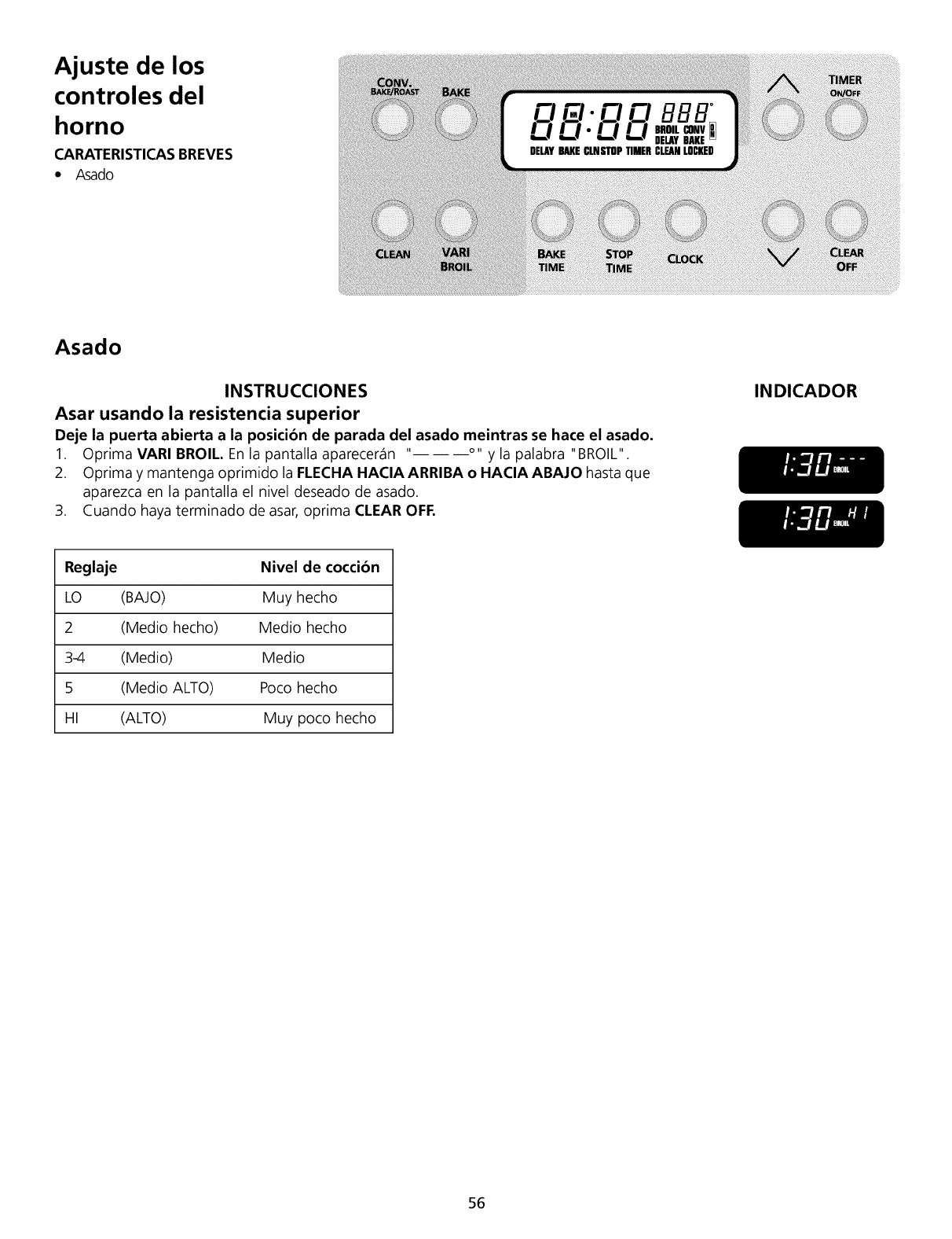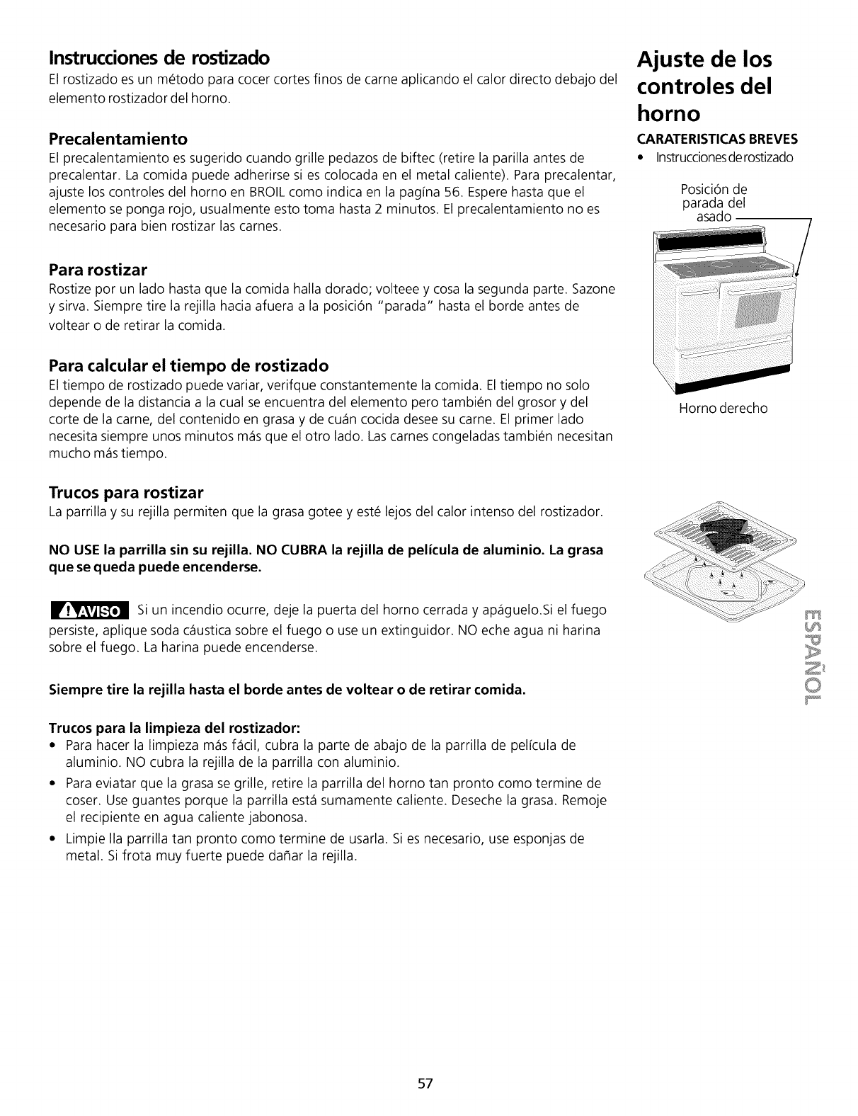 asador. Precaliente el elemento del asador para cocinar con la grilla incandecente.