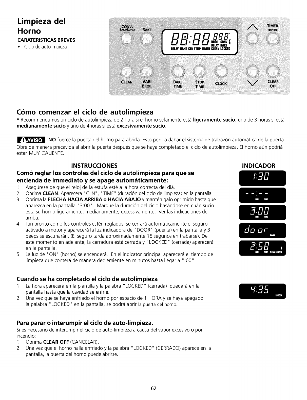 auto-limpieza" en secci6n "CONTROL DEL HORNO ELECTRONICO".