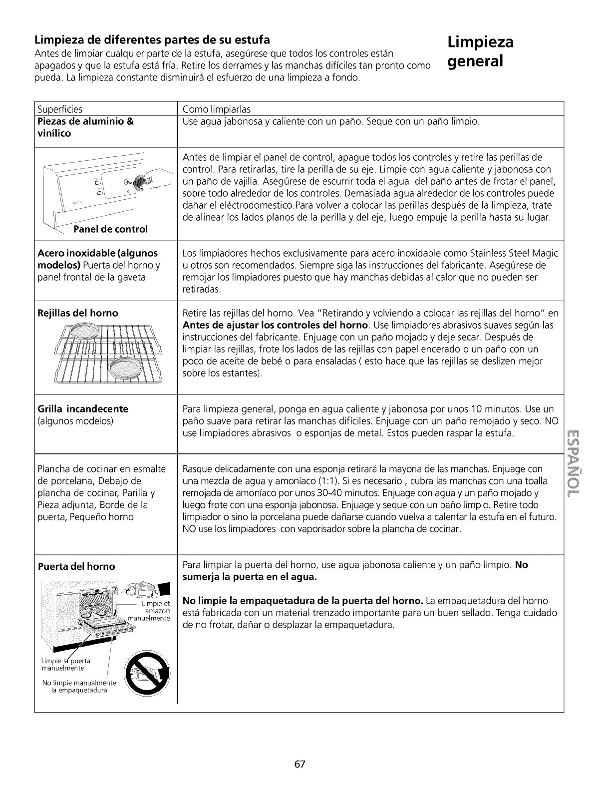 empaquetadura del horno. Estasareas no son limpiadas por el ciclo de auto-limpieza,