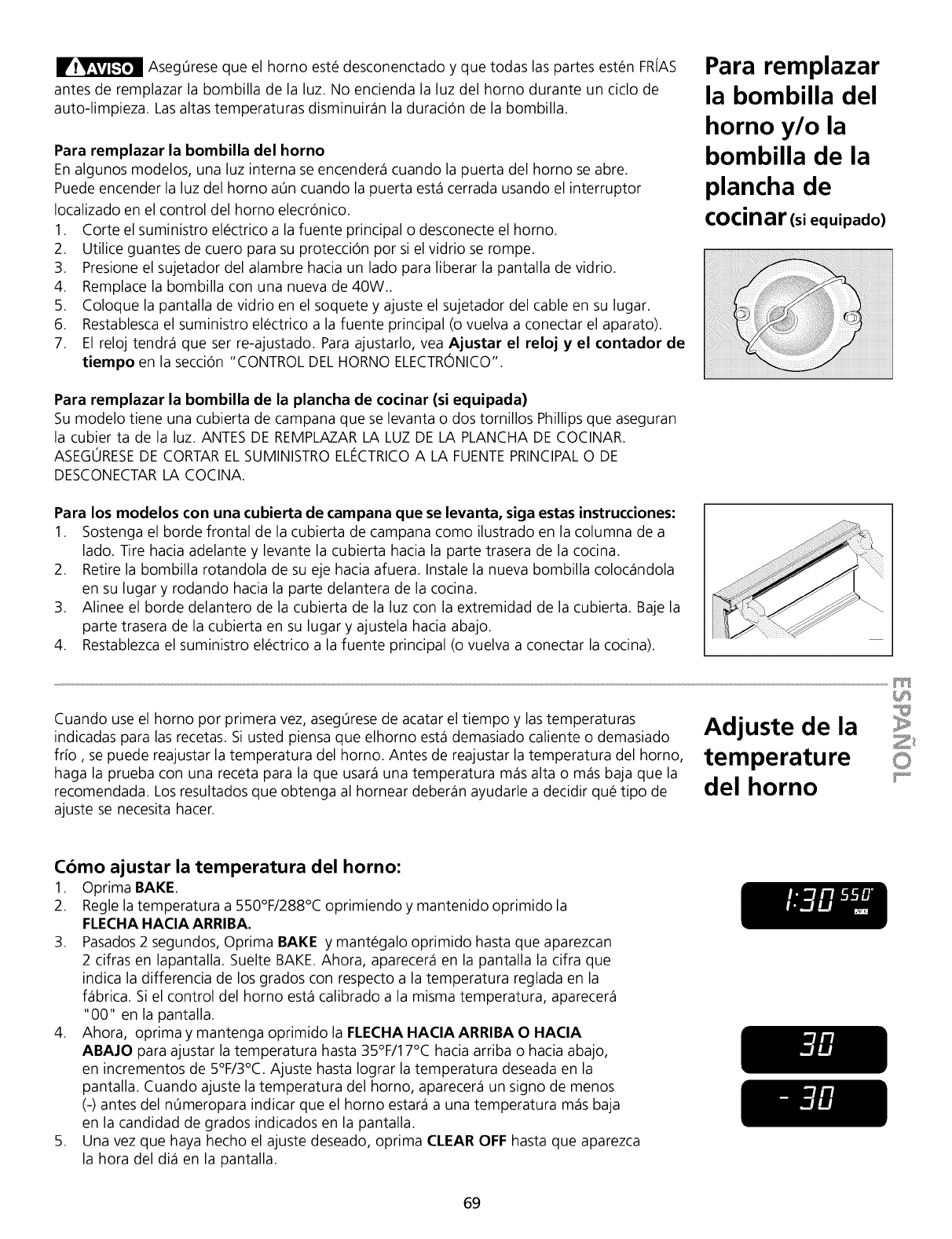 caliente o muy frio, vea "Ajuste de la temperatura del horno" en secci6n "CONTROL
