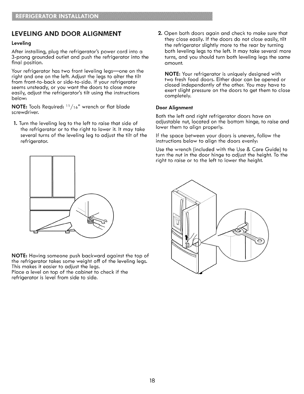 Leveling and Door Alignment ...................... 18