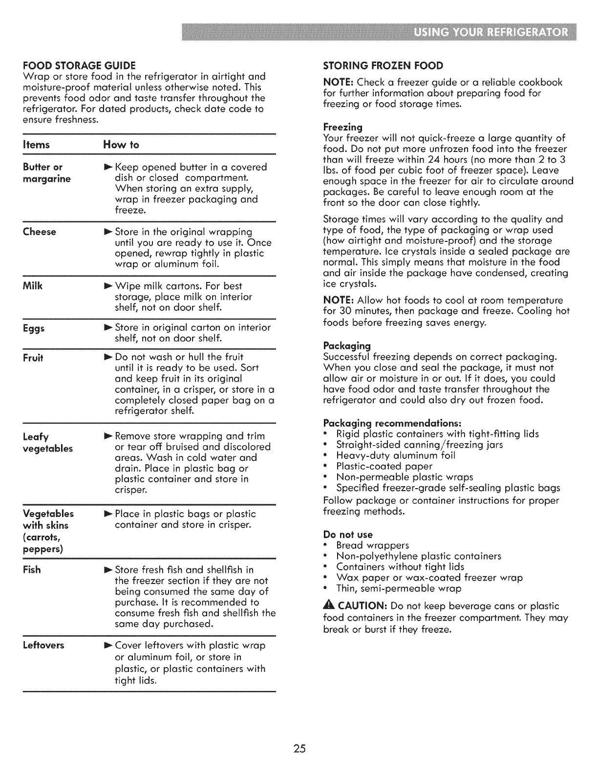 Food Storage Guide .................................... 25