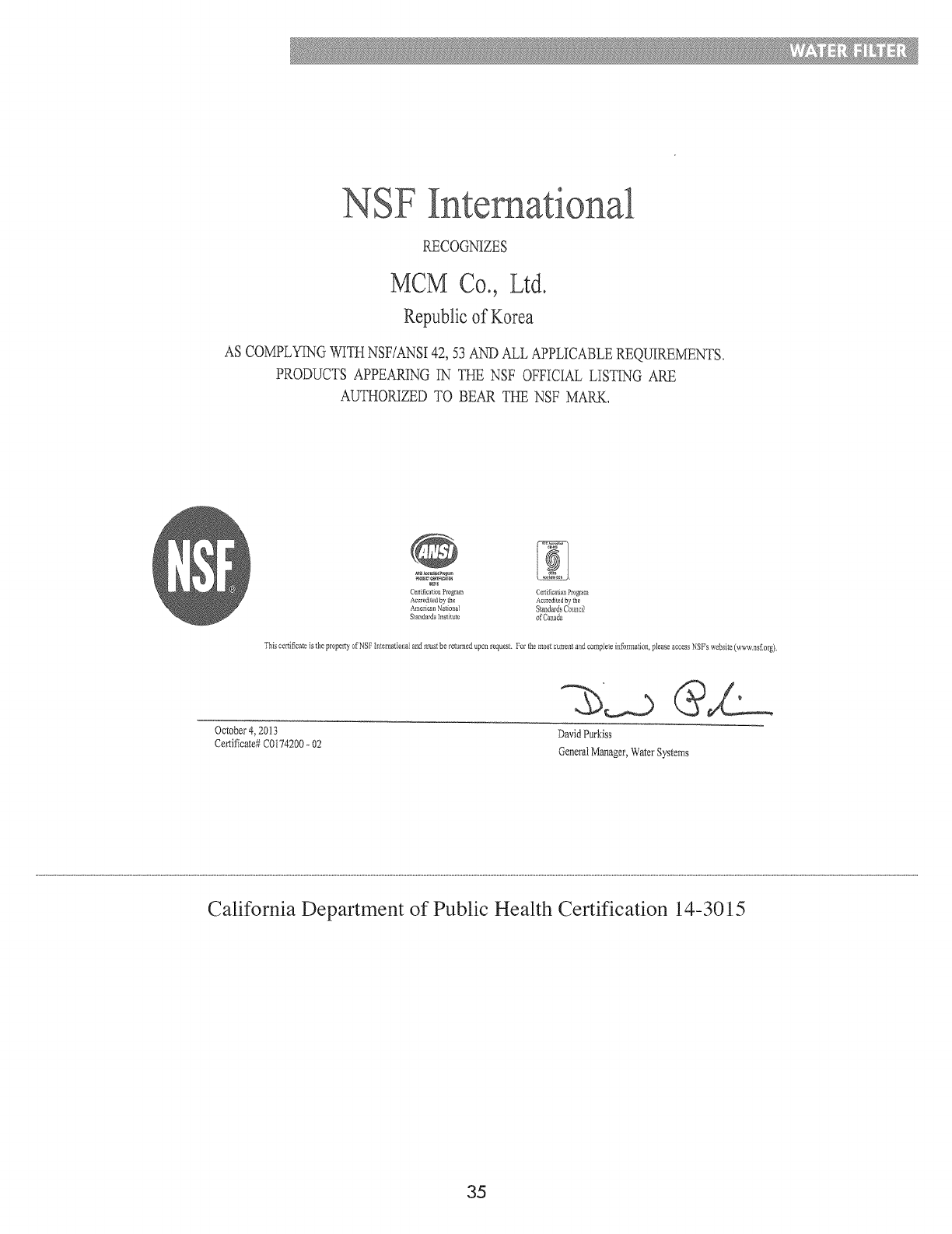 Water Filter ................................................ 32-35