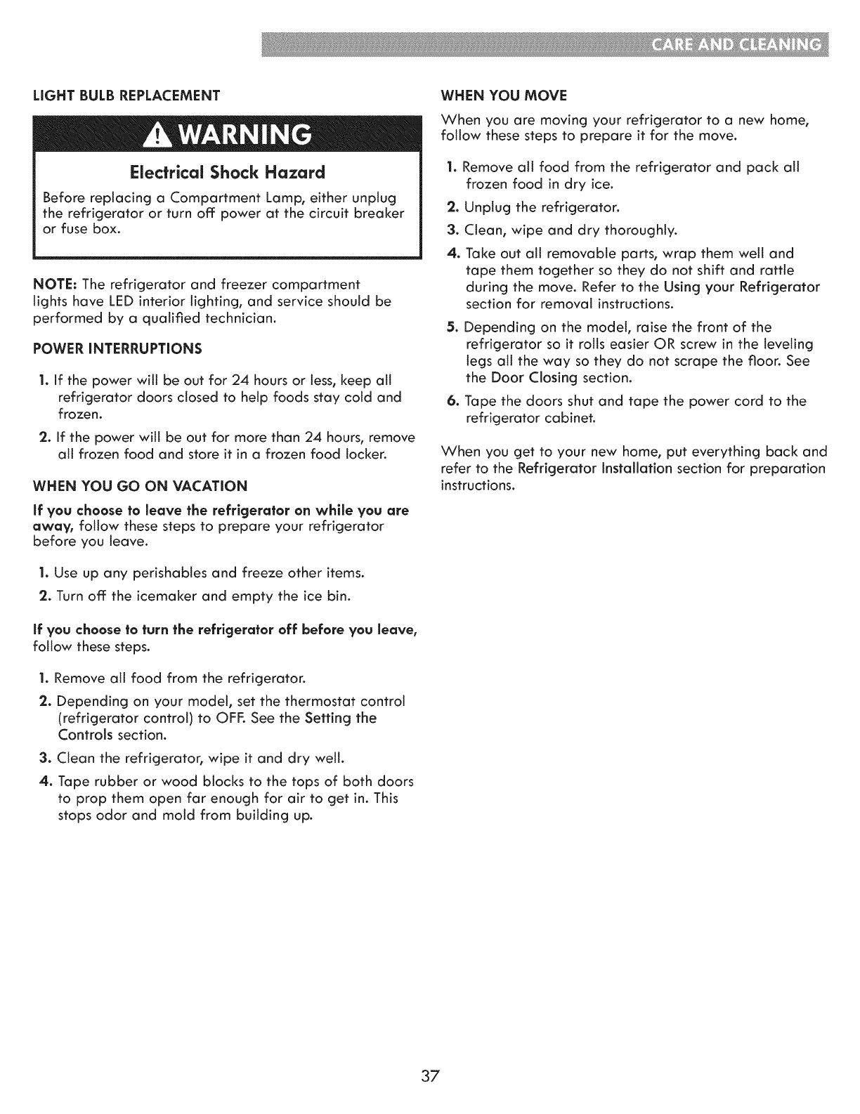 Care And Cleaning ................................... 36-37