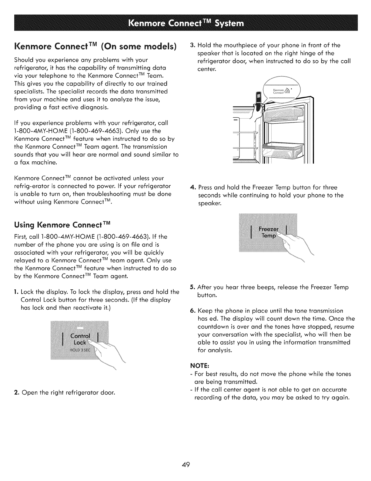 via your telephone to the Kenmore Connect TM Team.