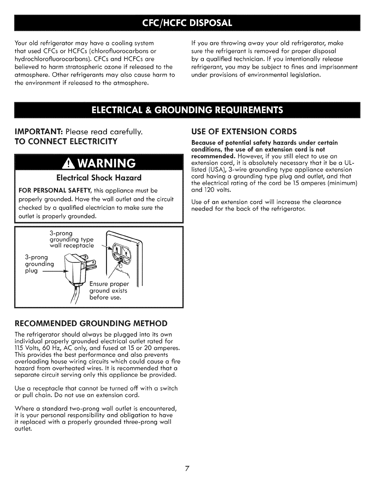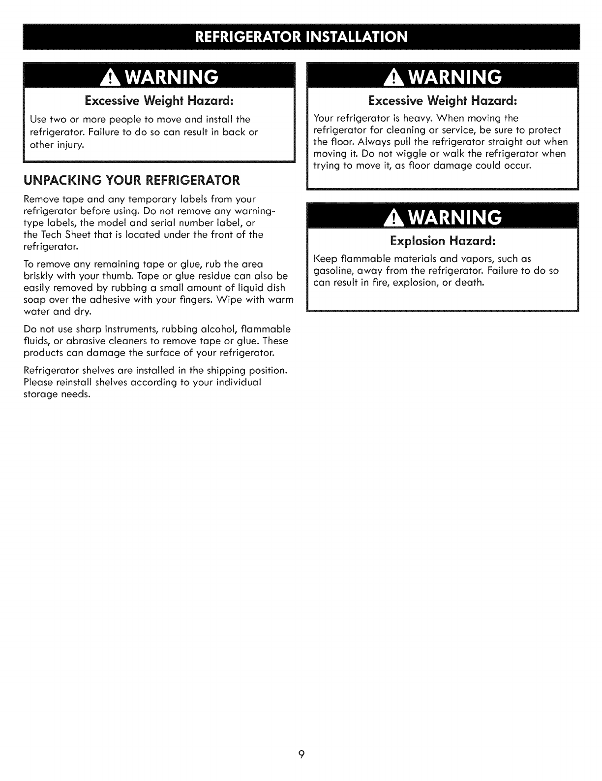 Refrigerator Installation .............................. 9-18