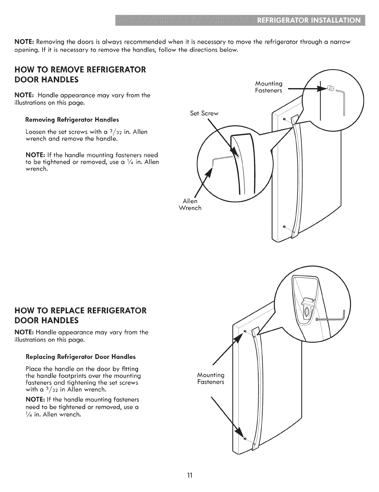Freezer Handles, Doors and Drawers .......11-17