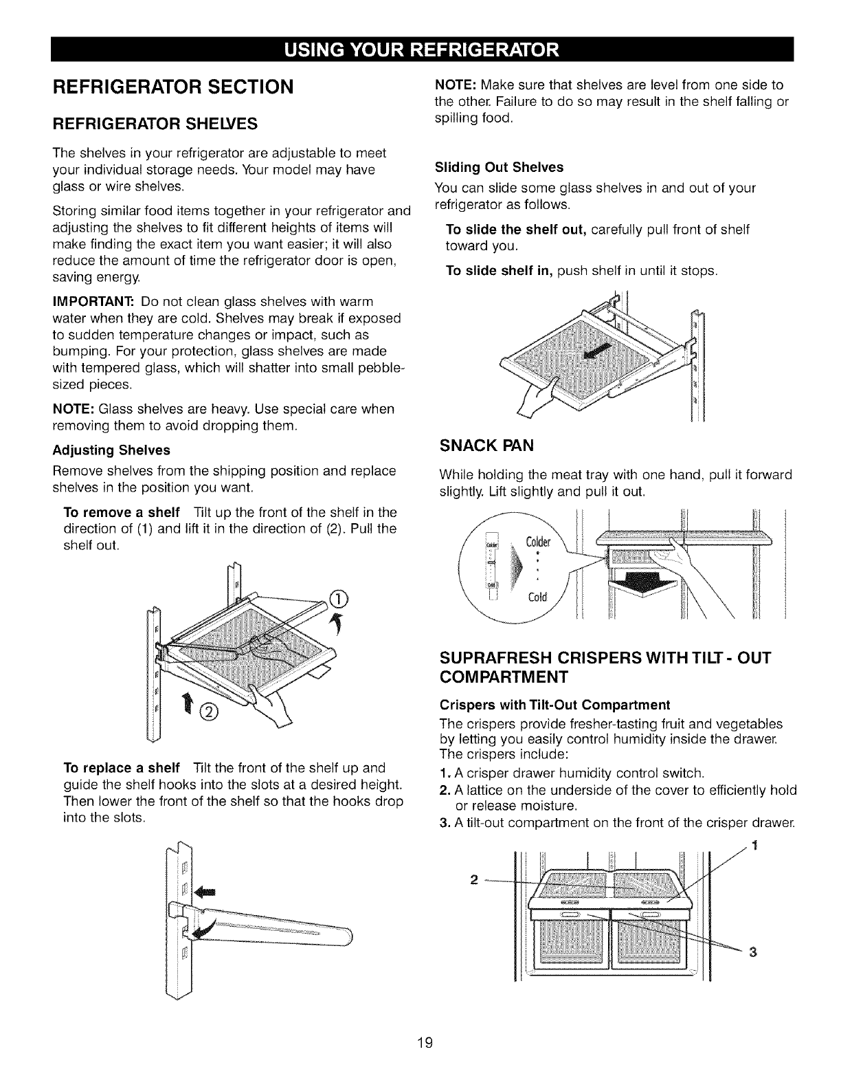from the freezer to the fresh food section and move all packages that block vents and restrict airflow. Refer