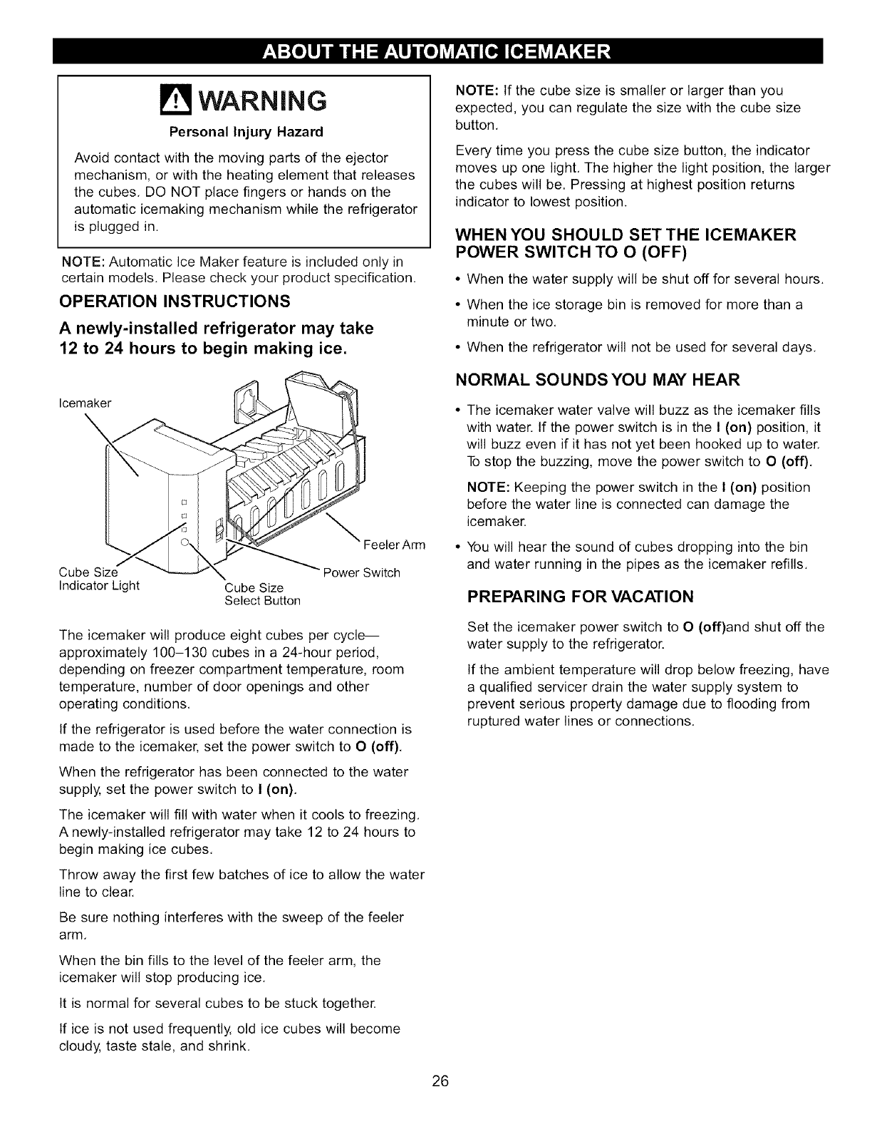 Icemaker power switch in the O(off) position, Move the switch to the I (on) position,