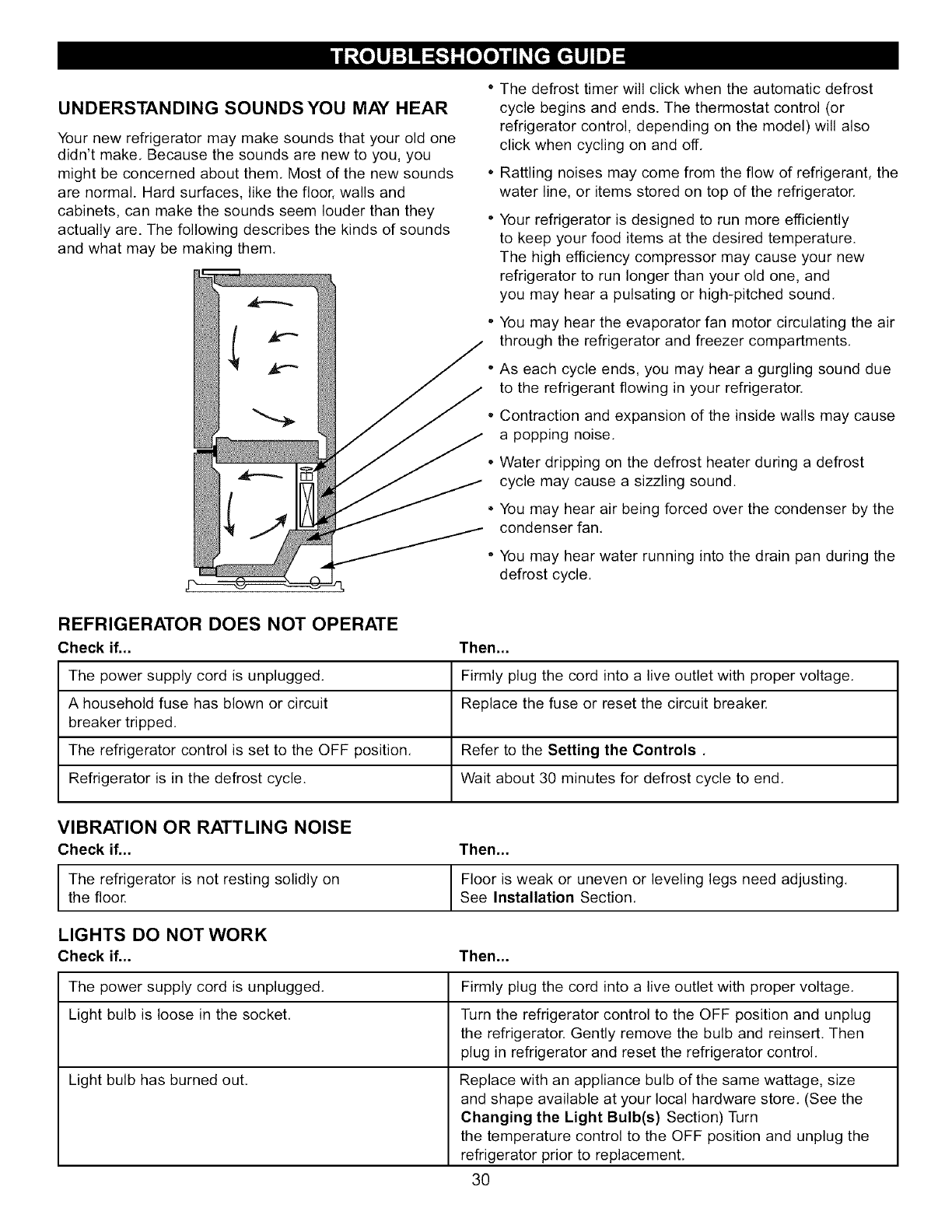 The sounds may be normal for your refrigerator. I Refer to the Understanding Sounds You May Hear section.