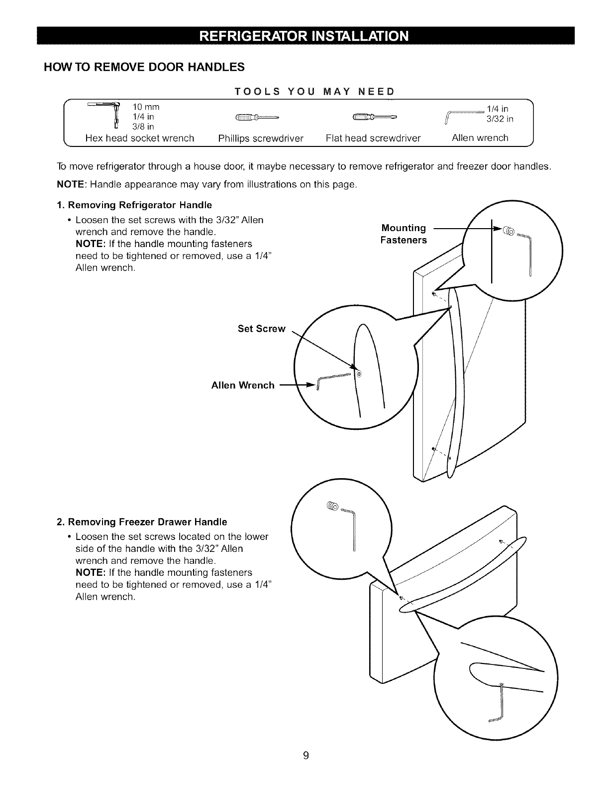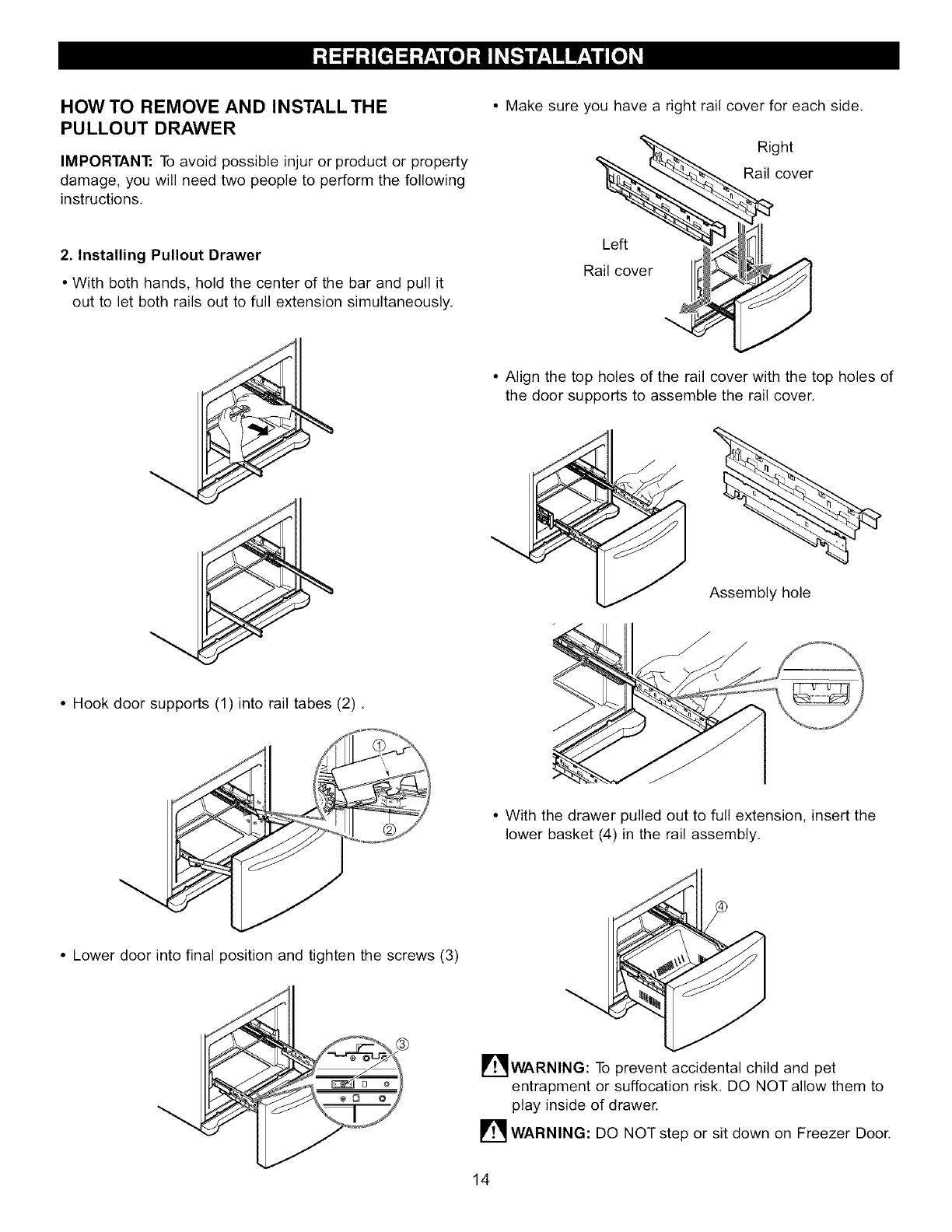 KENMORE ELITE Bottom Mount Refrigerator Manual L0610629 KENMORE ELITE Bottom Mount Refrigerator Owner's Manual, KENMORE ELITE Bottom Mount Refrigerator installation guides