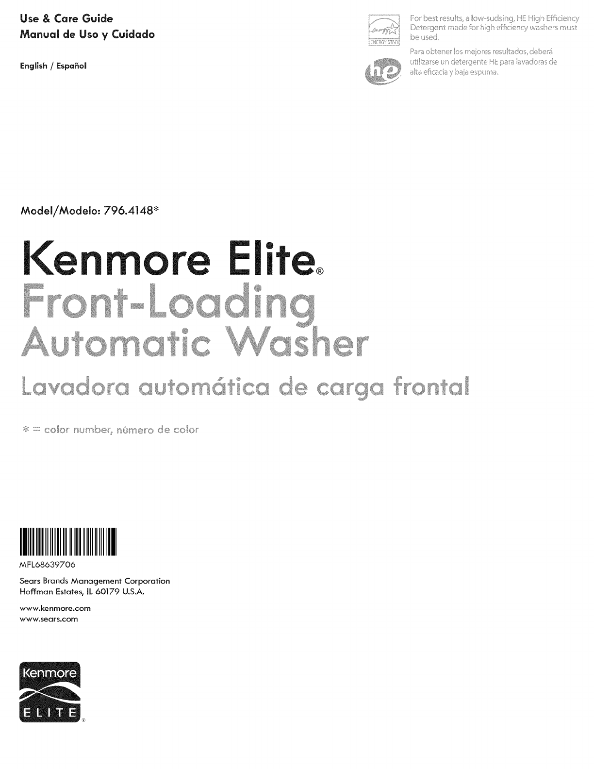 User Manual: Kenmore Elite 79641482410 79641482410 KENMORE ELITE WASHER - Manuals and Guides View the owners manual for your KENMORE ELITE WASHER #79641482410. Home:Laundry & Garment Care Parts:Kenmore Elite Parts:Kenmore Elite WASHER Manual