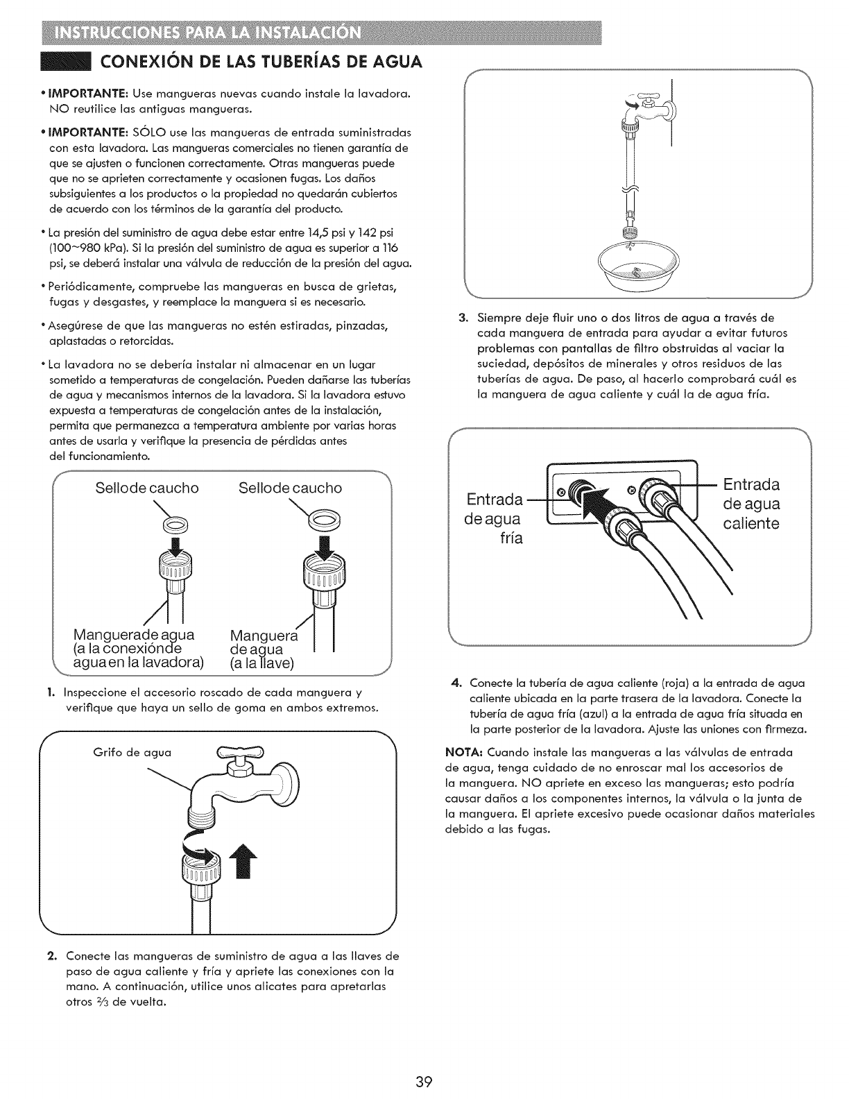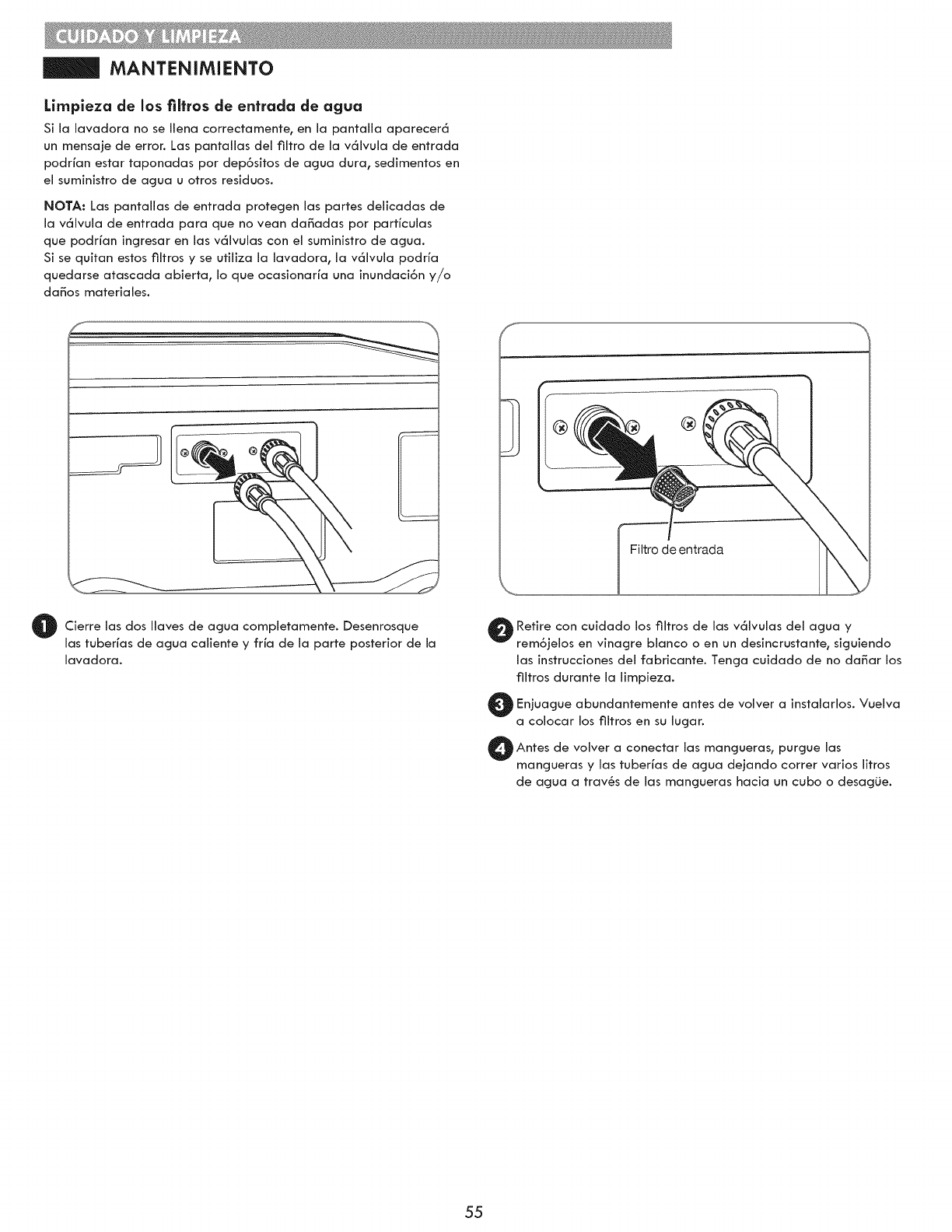 Cierre las Ilaves de agua_ desenchufe la lavadora y Ilame al