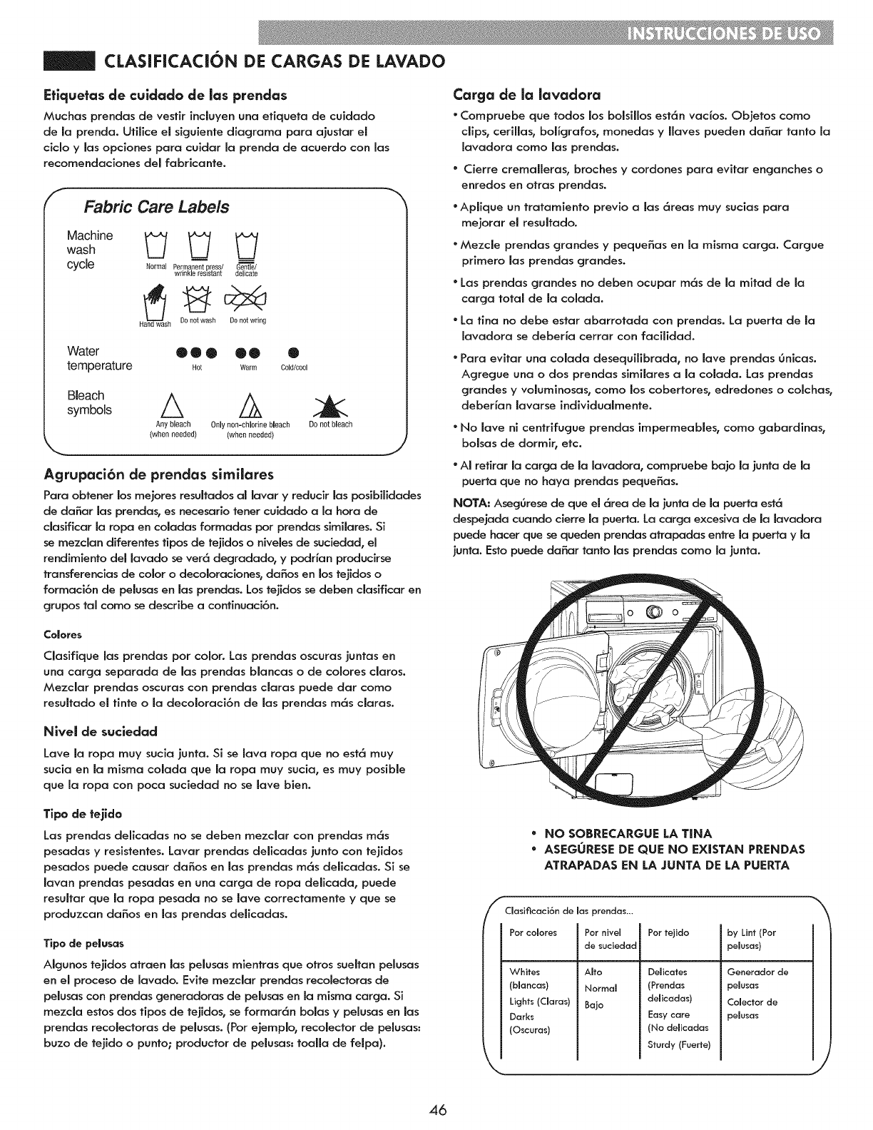 correcci6n. Si se colocan prendas pesadas solas (atfombra