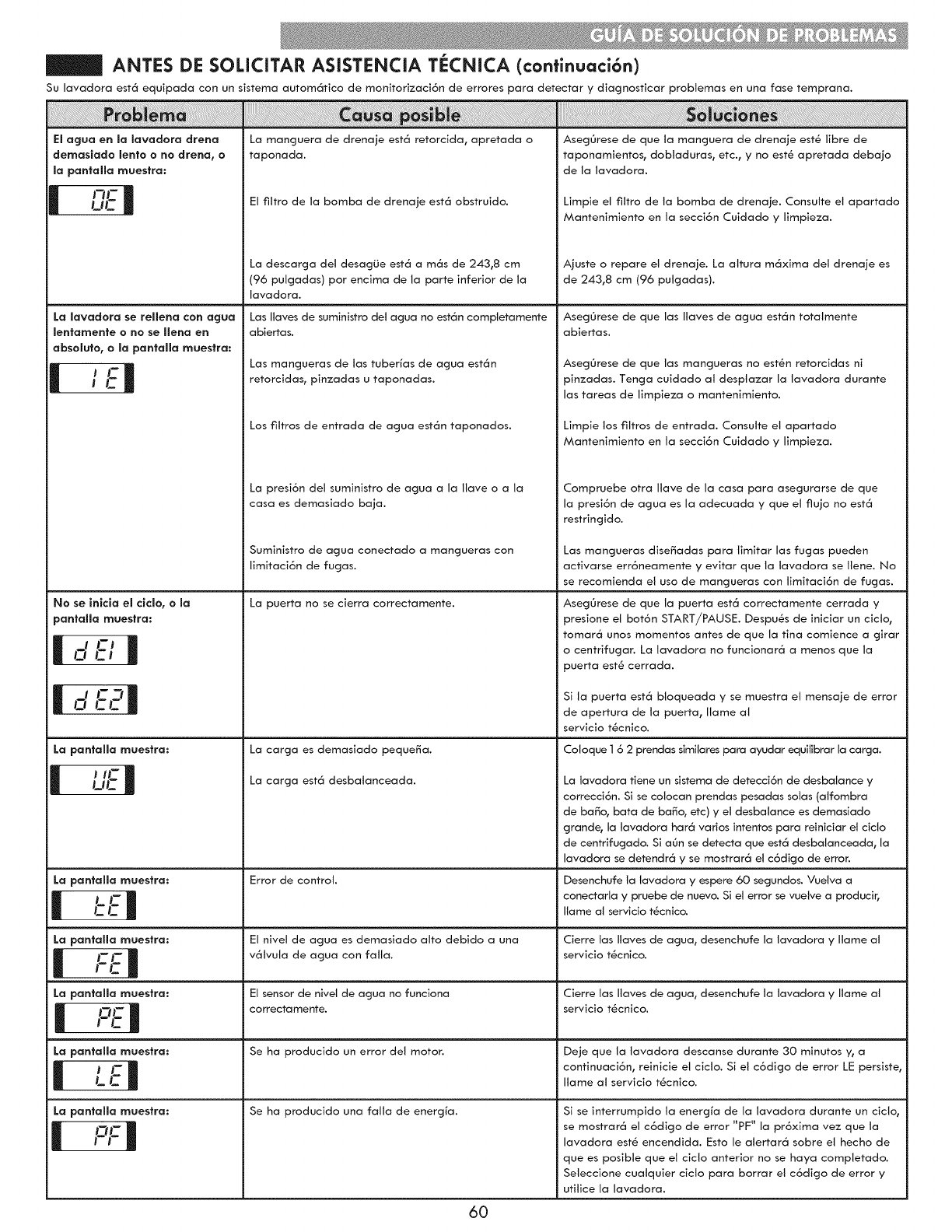 lavadora se detendr6 y se mostrar6 el c6digo de error.