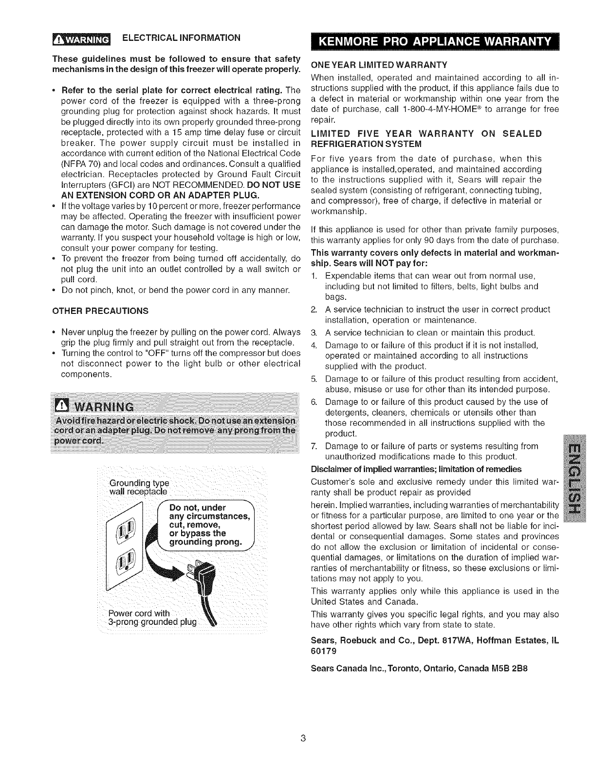 Kenmore Pro 25344833600 User Manual FREEZER Manuals And Guides L0609654