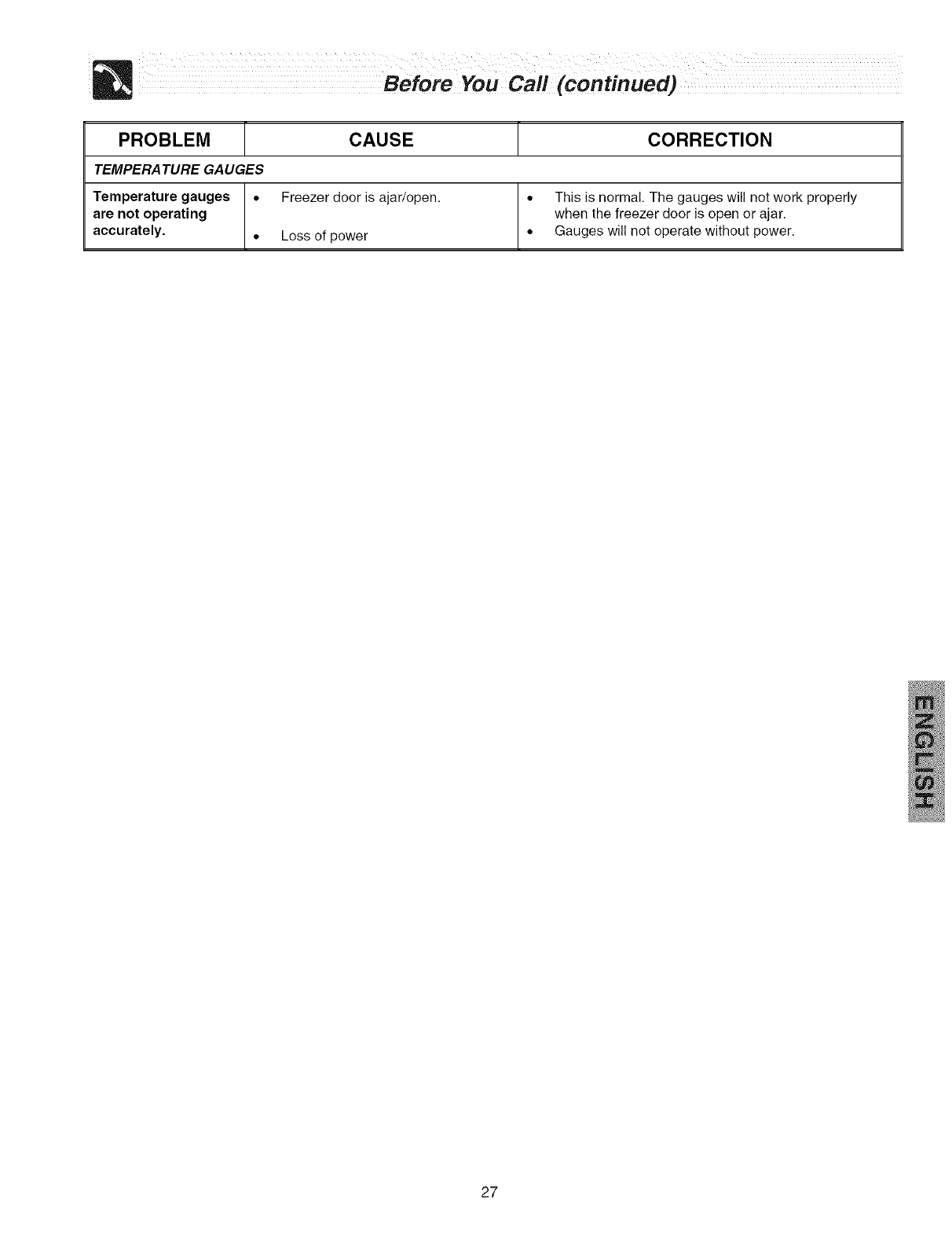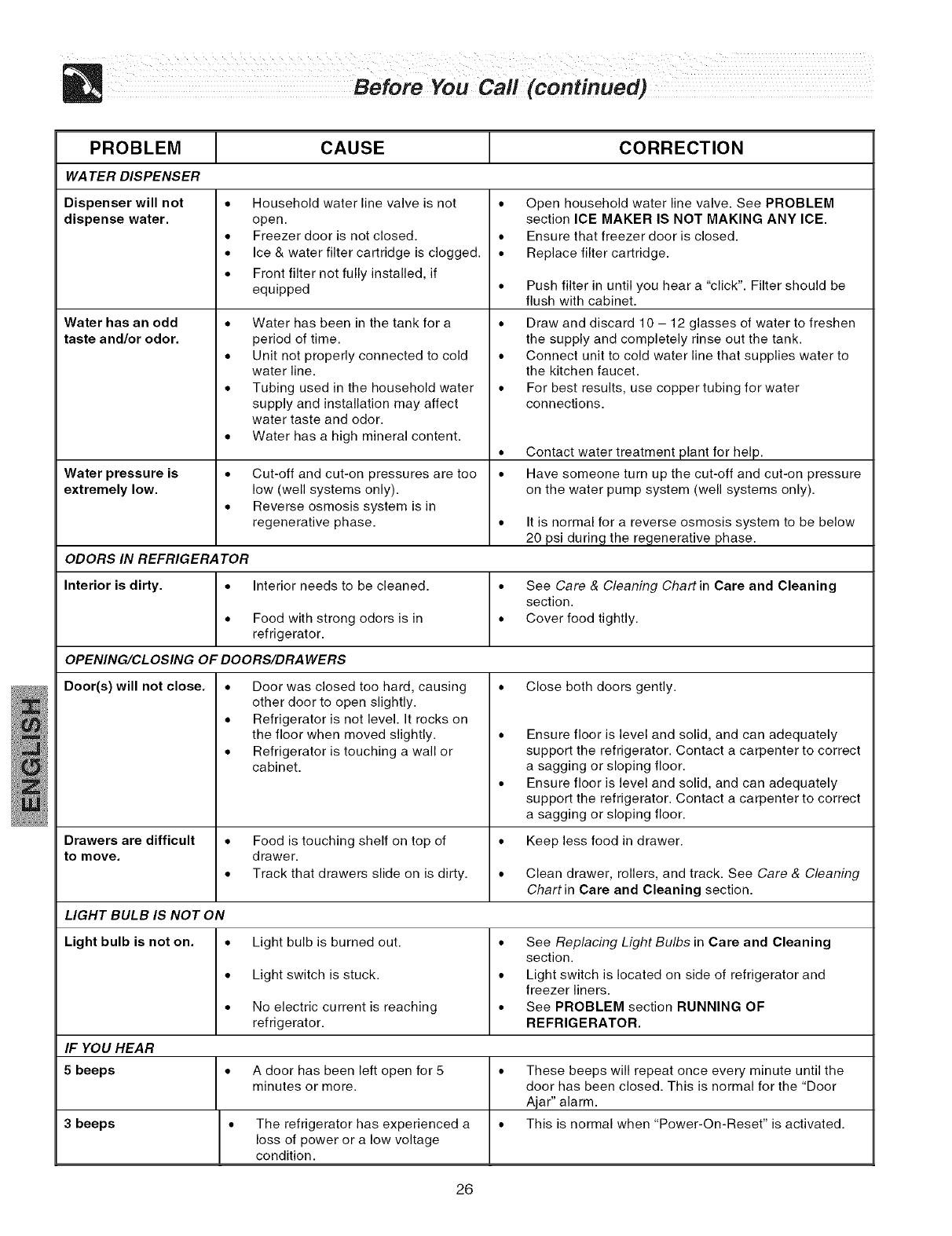 3 beeps • The refrigerator has experienced a -This is normal when "Power-On-Reset" is activated.