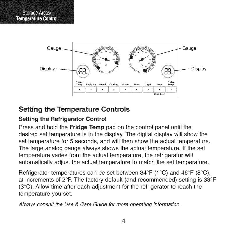 Refrigerator temperatures can be set between 34°F (1°C) and 46°F (8°C),
