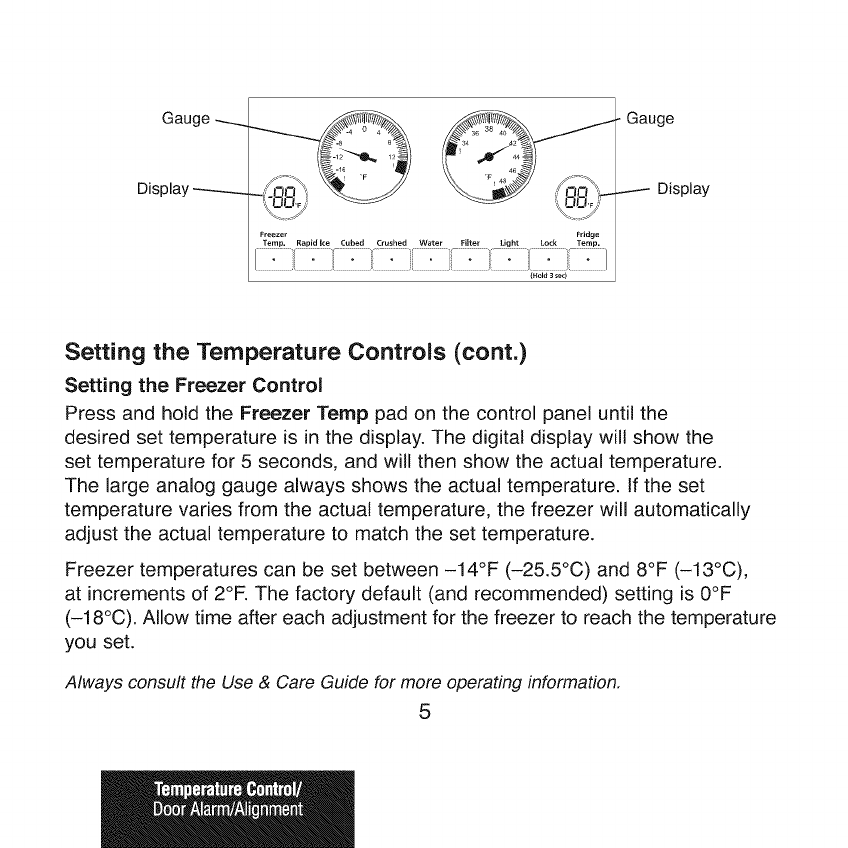 Freezer temperatures can be set between -14°F (-25.5°C) and 8°F (-13°C),