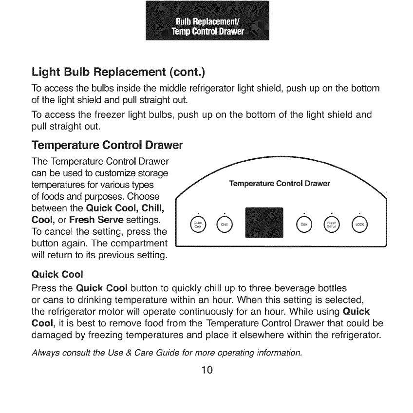 Press the Fresh Serve button to set the Temperature Control Drawer to