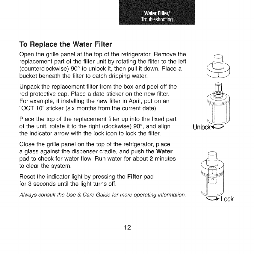 Temp. Rapid Ice Cubed Crushed Water Filter Light Lock Temp.