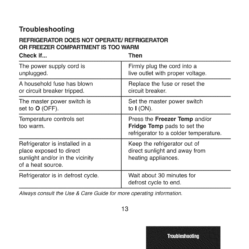 REFRIGERATOR DOES NOT OPERATE/REFRIGERATOR