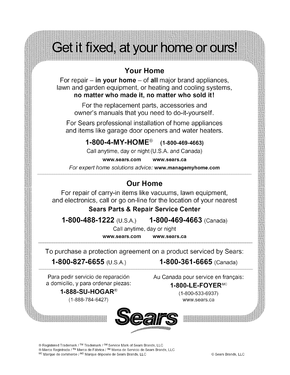 ® Marca Registrada /Marca de Fabrica /SM Marca de Servicio de Sears Brands, LLC