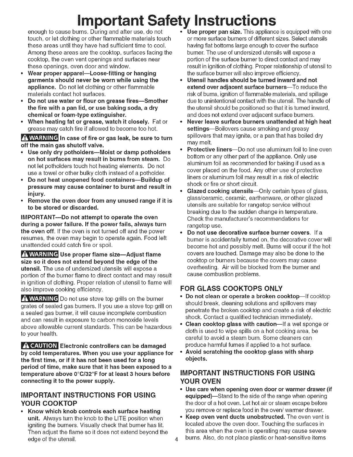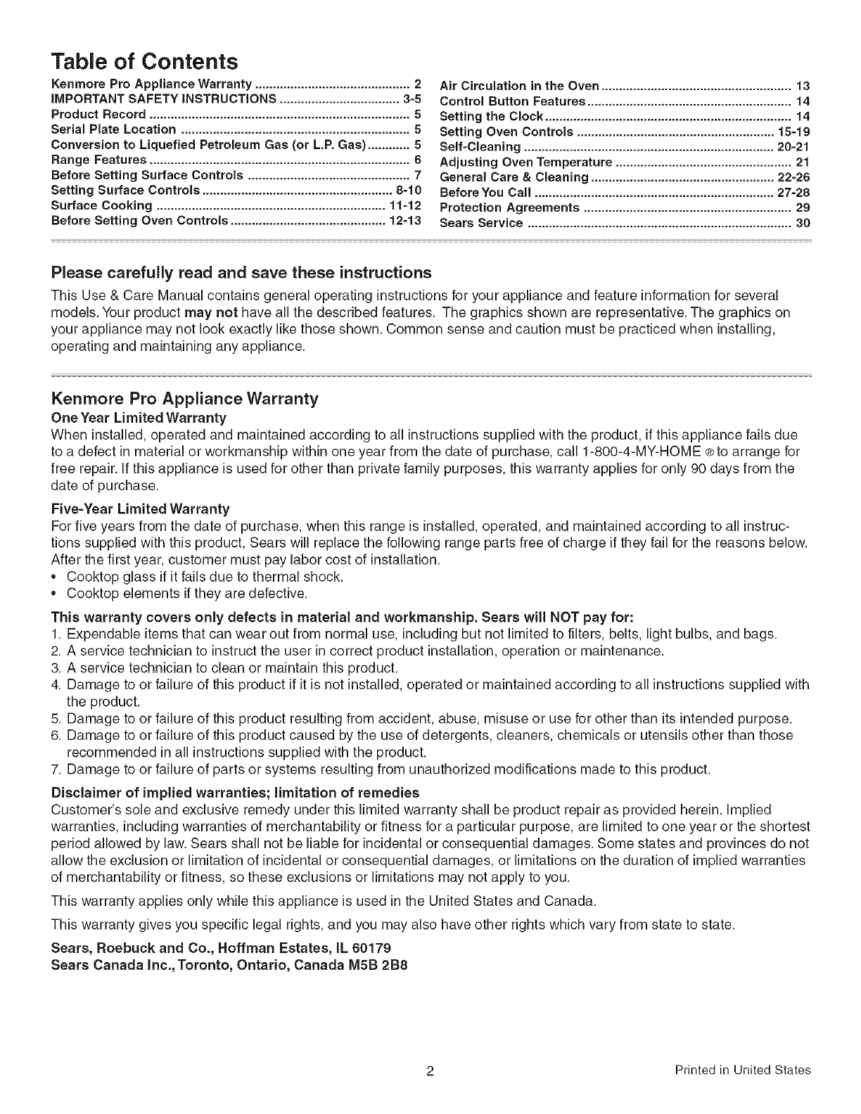 This Use & Care Manual contains general operating instructions for your appliance and feature information for several