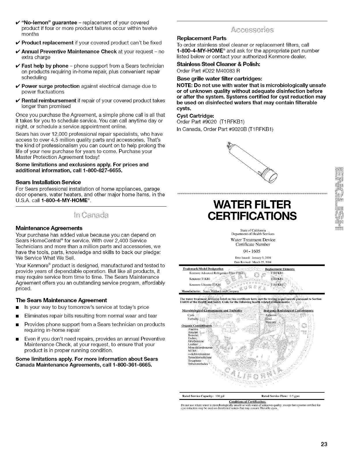 WATER FILTER CERTIFICATIONS ............................................ 23
